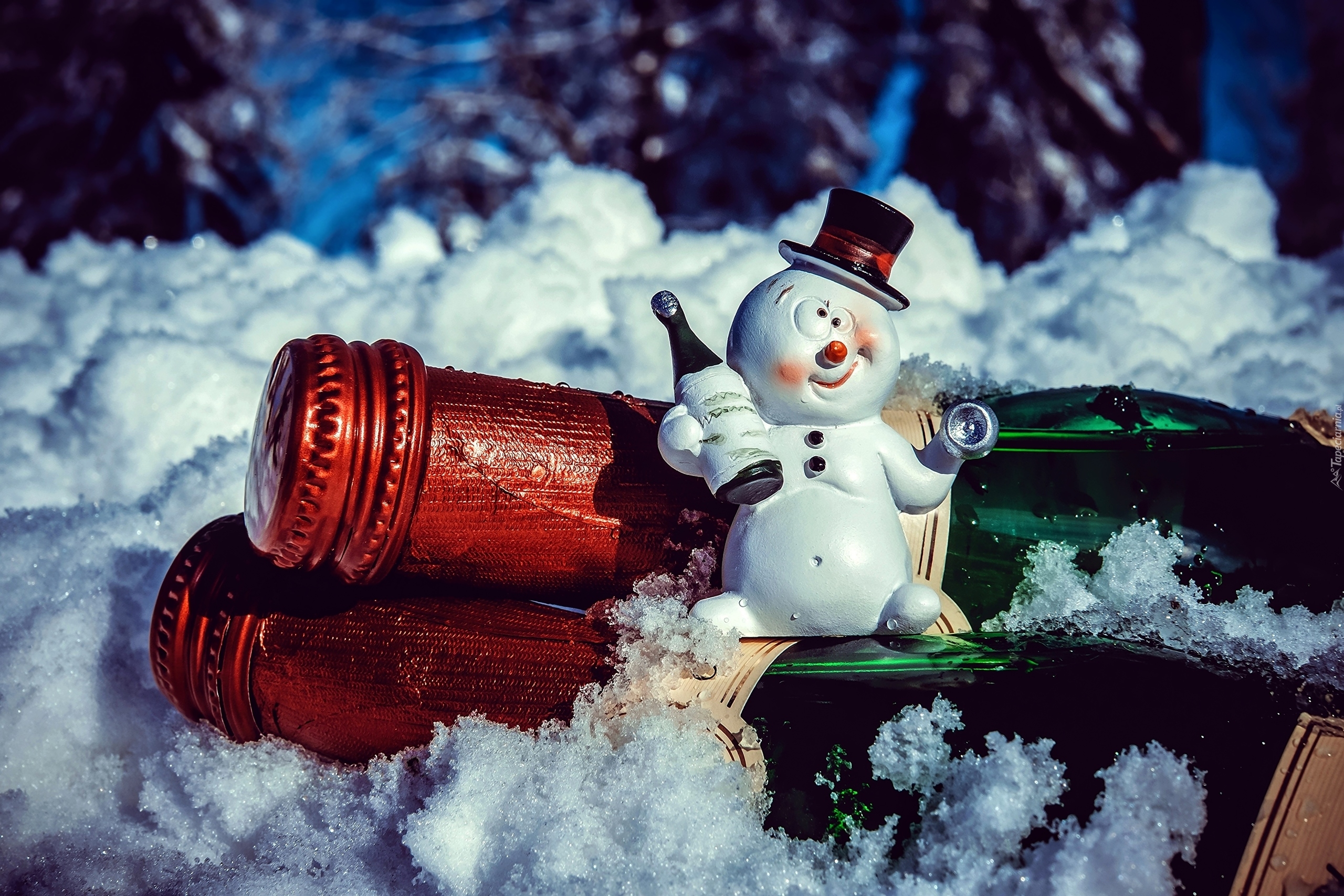 Edytor tapety: Bałwanek z butelką szampana