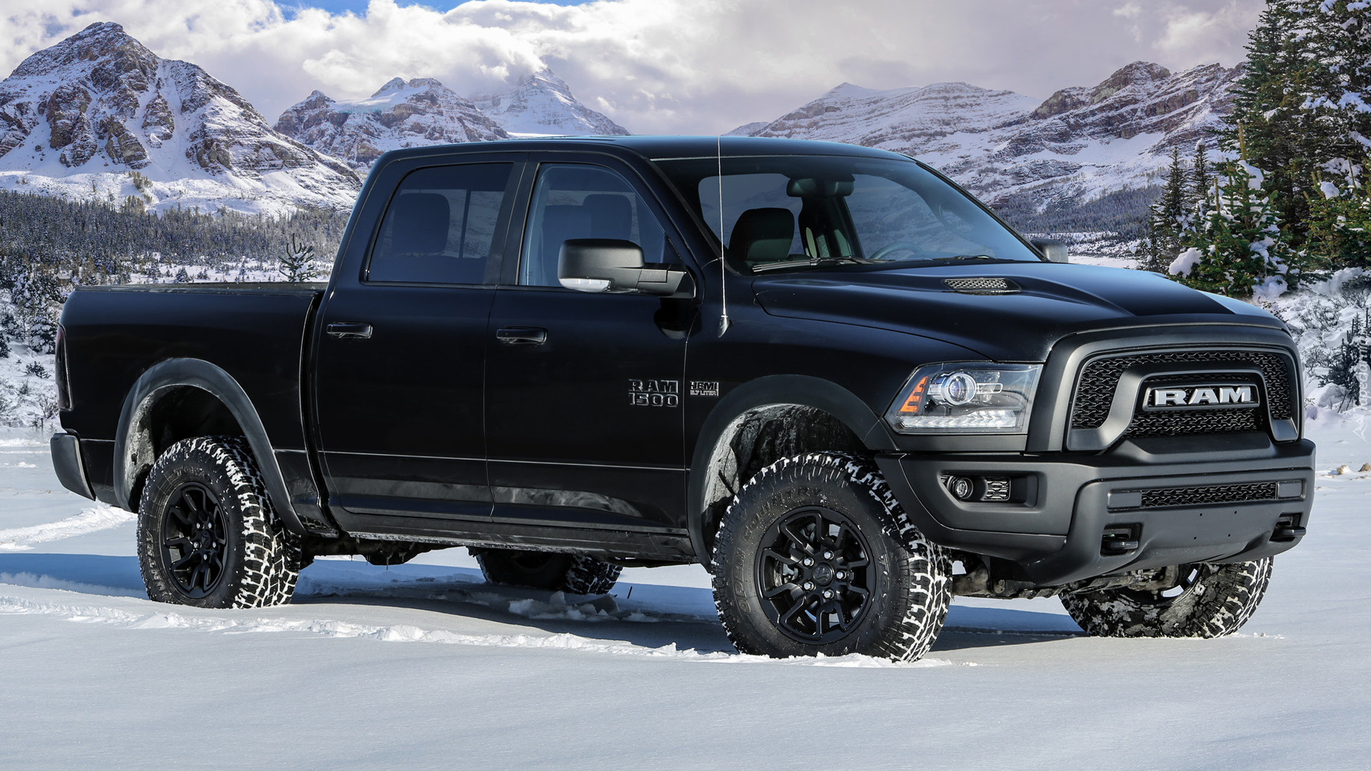 Edytor tapety: Czarny Dodge Ram 1500 bokiem