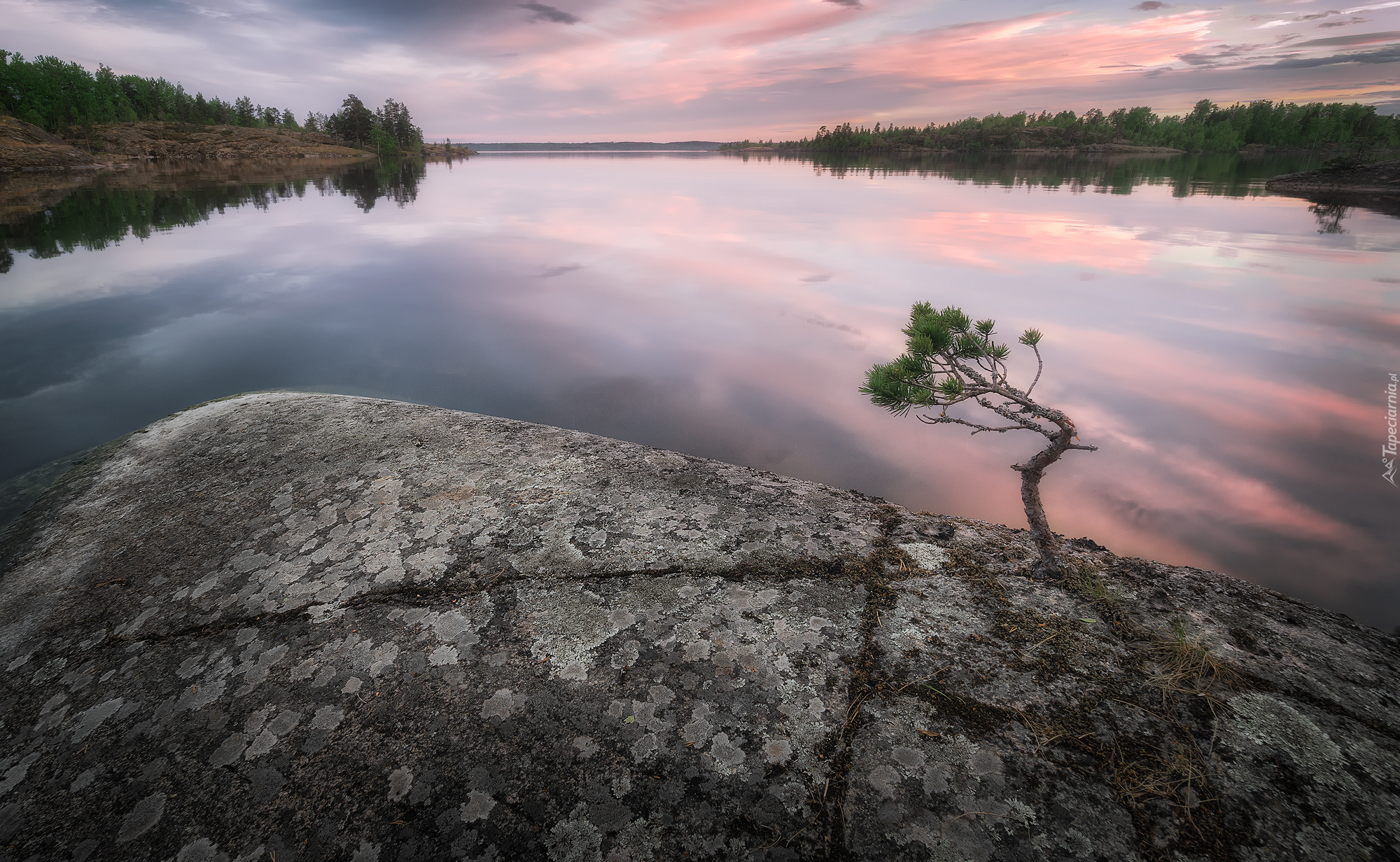 Edytor tapety: Drzewa wokół jeziora