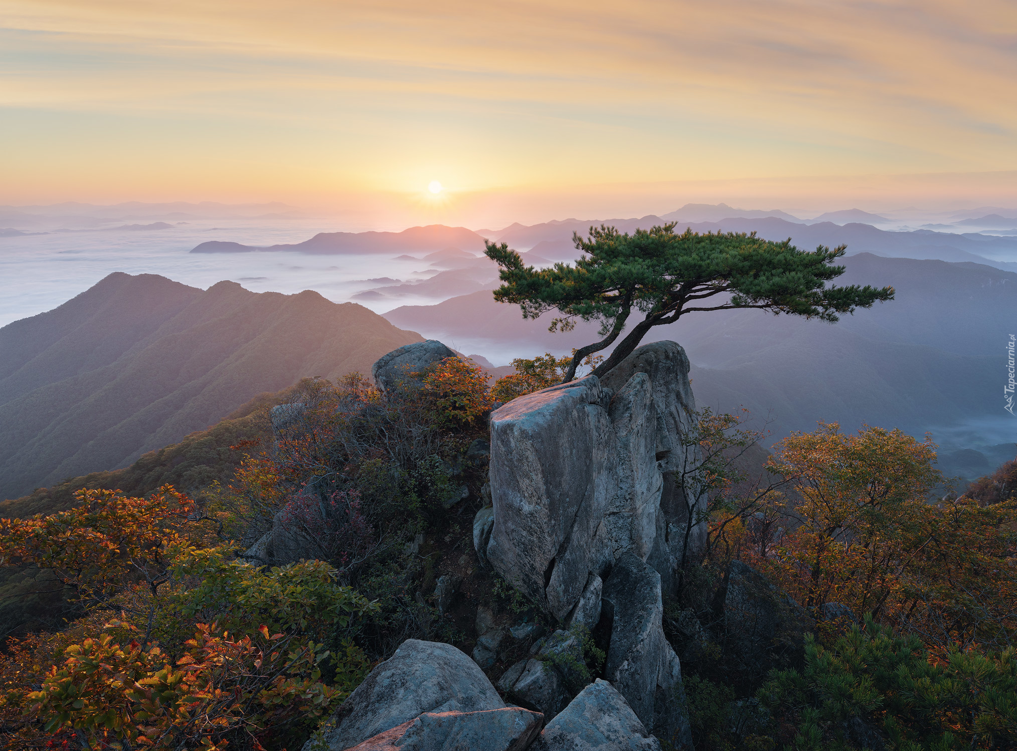 Edytor tapety: Sosny na skale w parku prowincjonalnym Daedunsan