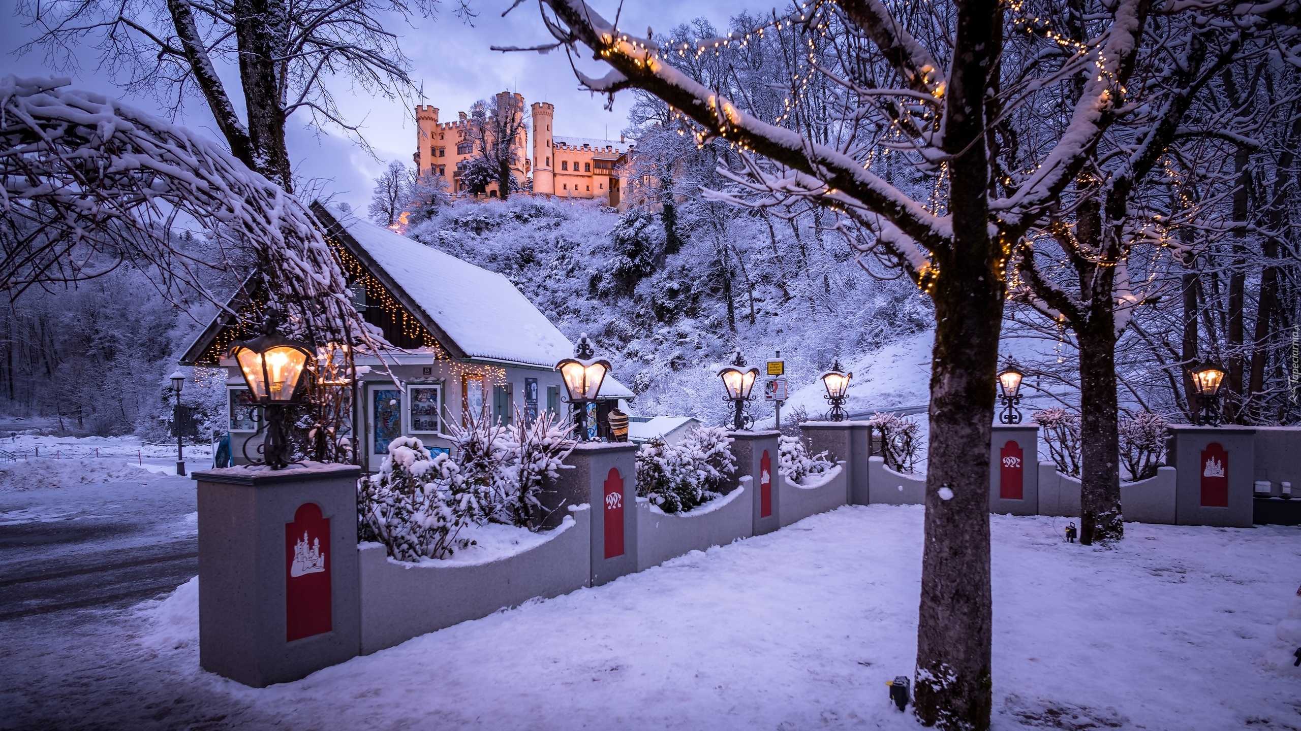 Edytor tapety: Widok na zamek Hohenschwangau w Bawarii