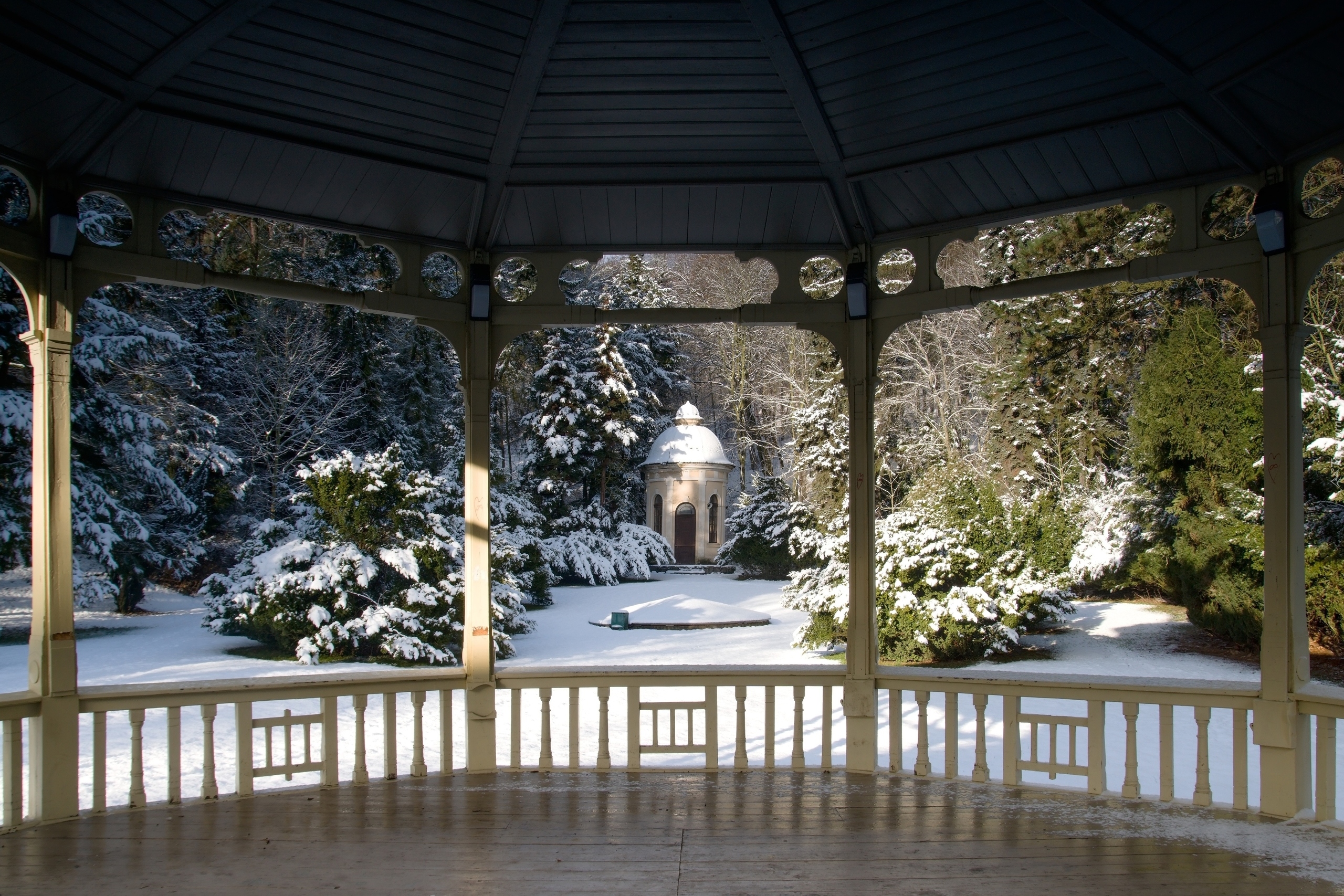 Edytor tapety: Altana w parku zimową porą