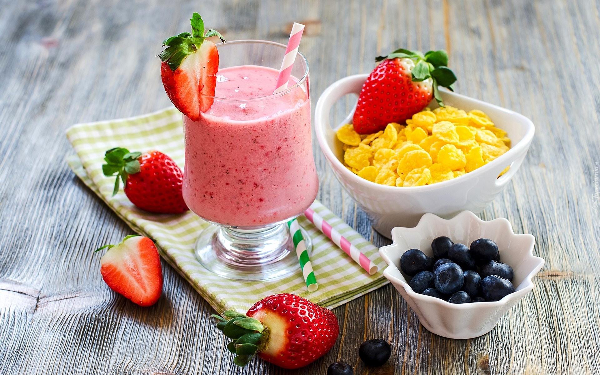 Edytor tapety: Koktajl truskawkowy z dodatkami