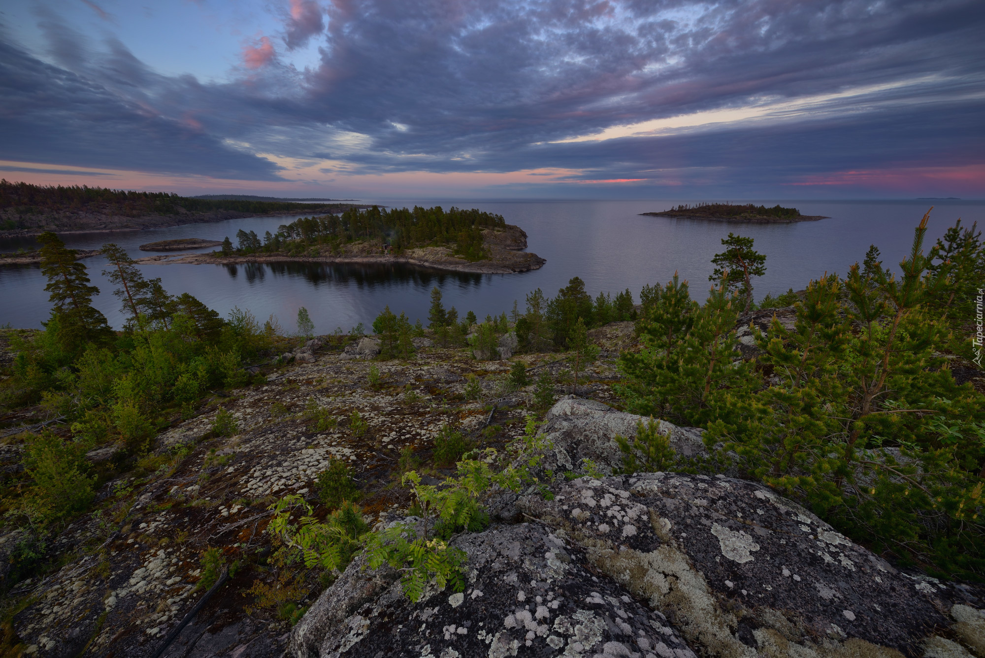Edytor tapety: Zalesione wysepki na jeziorze Ładoga w Rosji