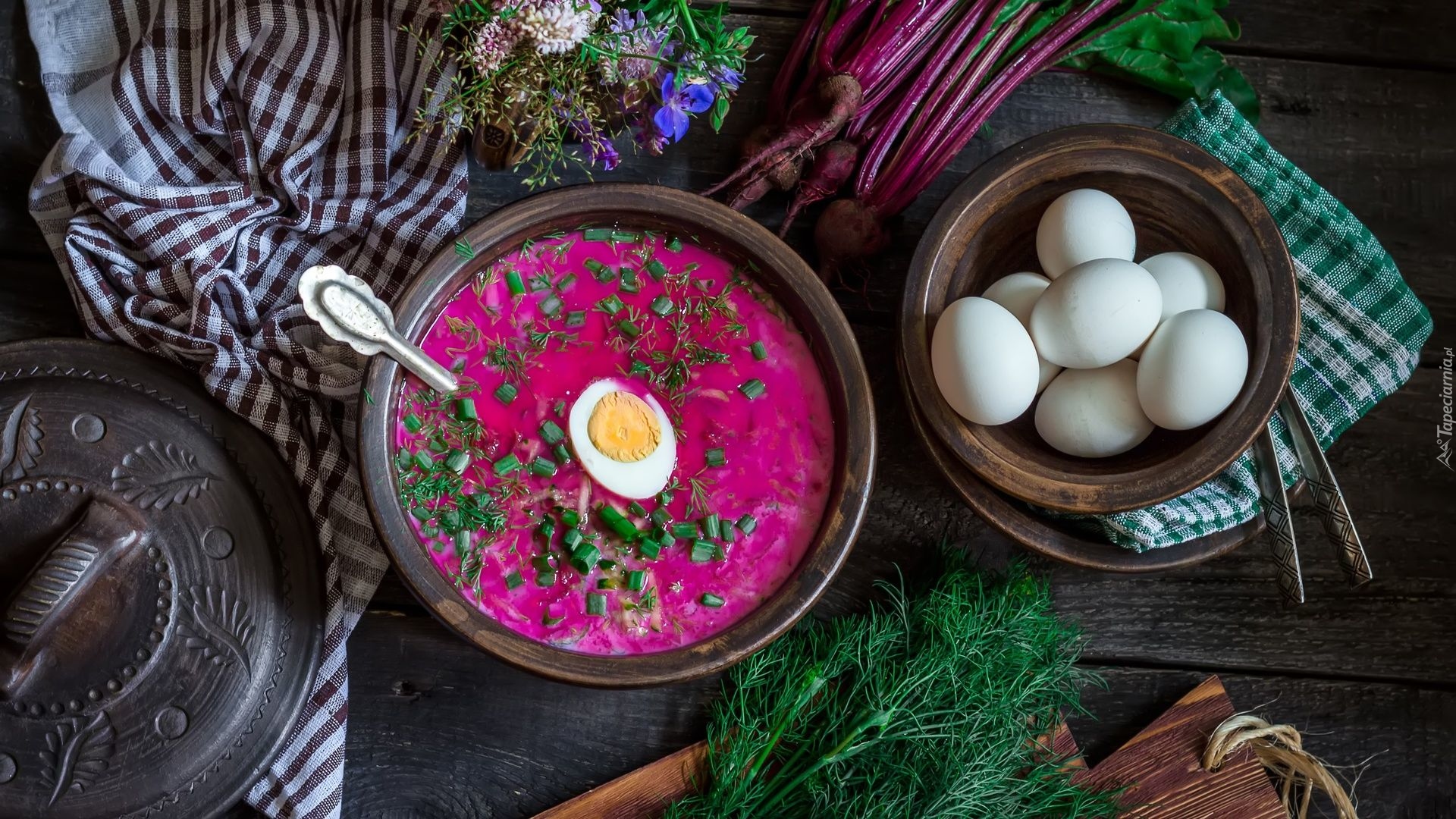 Edytor tapety: Botwinka z jajkami i koperkiem