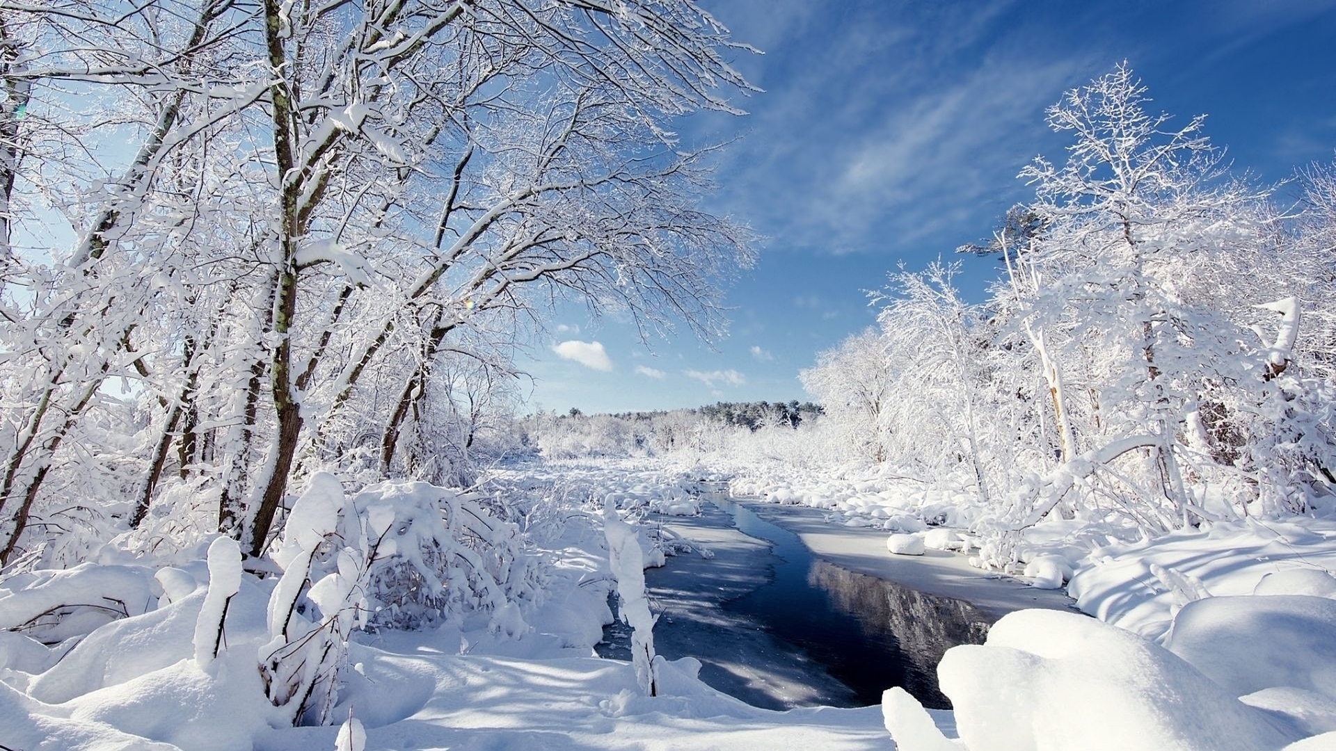 Edytor tapety: Drzewa i rzeka w zimowym krajobrazie