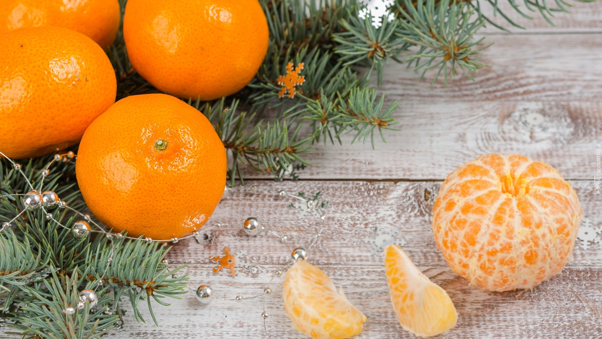 Edytor tapety: Mandarynki na świerkowych gałązkach