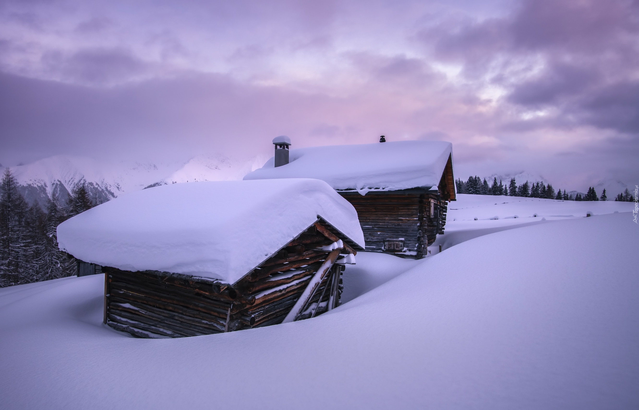 Edytor tapety: Zaśnieżone domy na wzgórzu