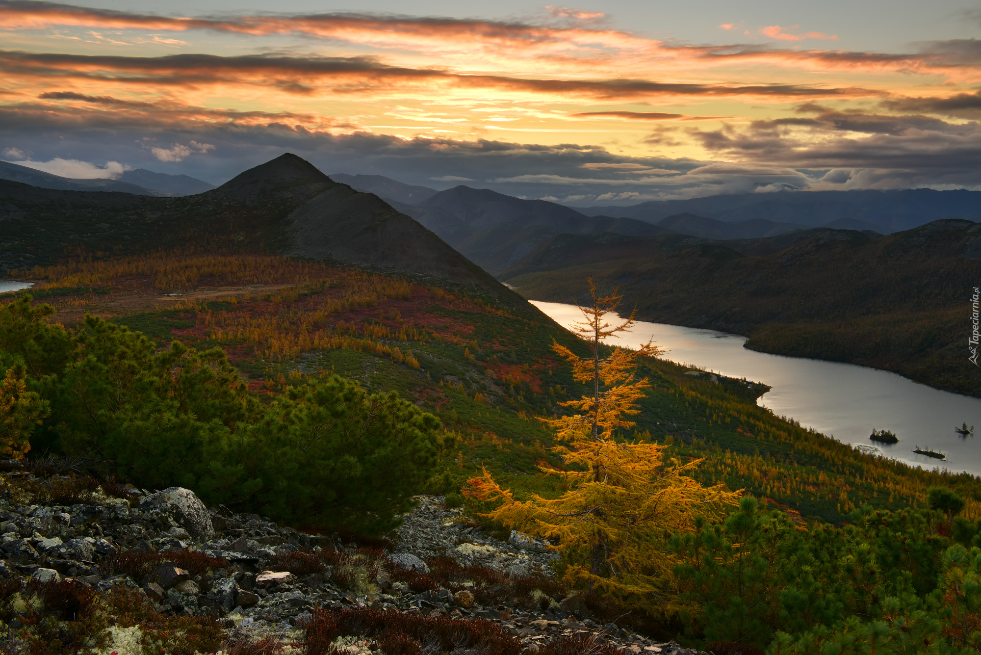 Edytor tapety: Widok na góry Kołymskie i jezioro Tantsuyushchikh Khariusov
