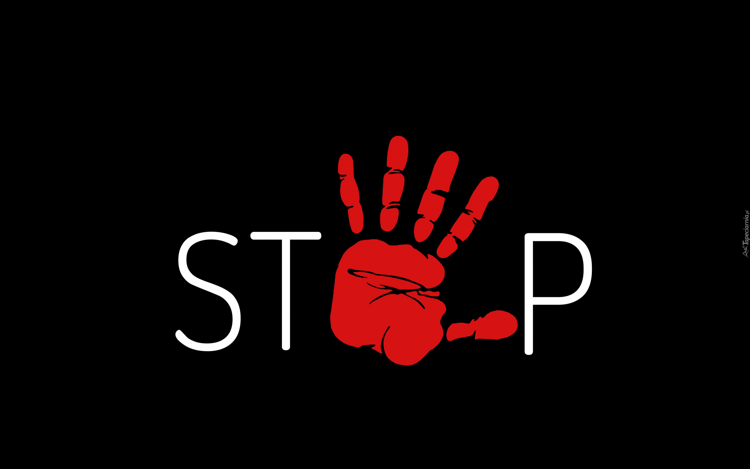 Edytor tapety: Napis stop z odciśniętą czerwoną ręką