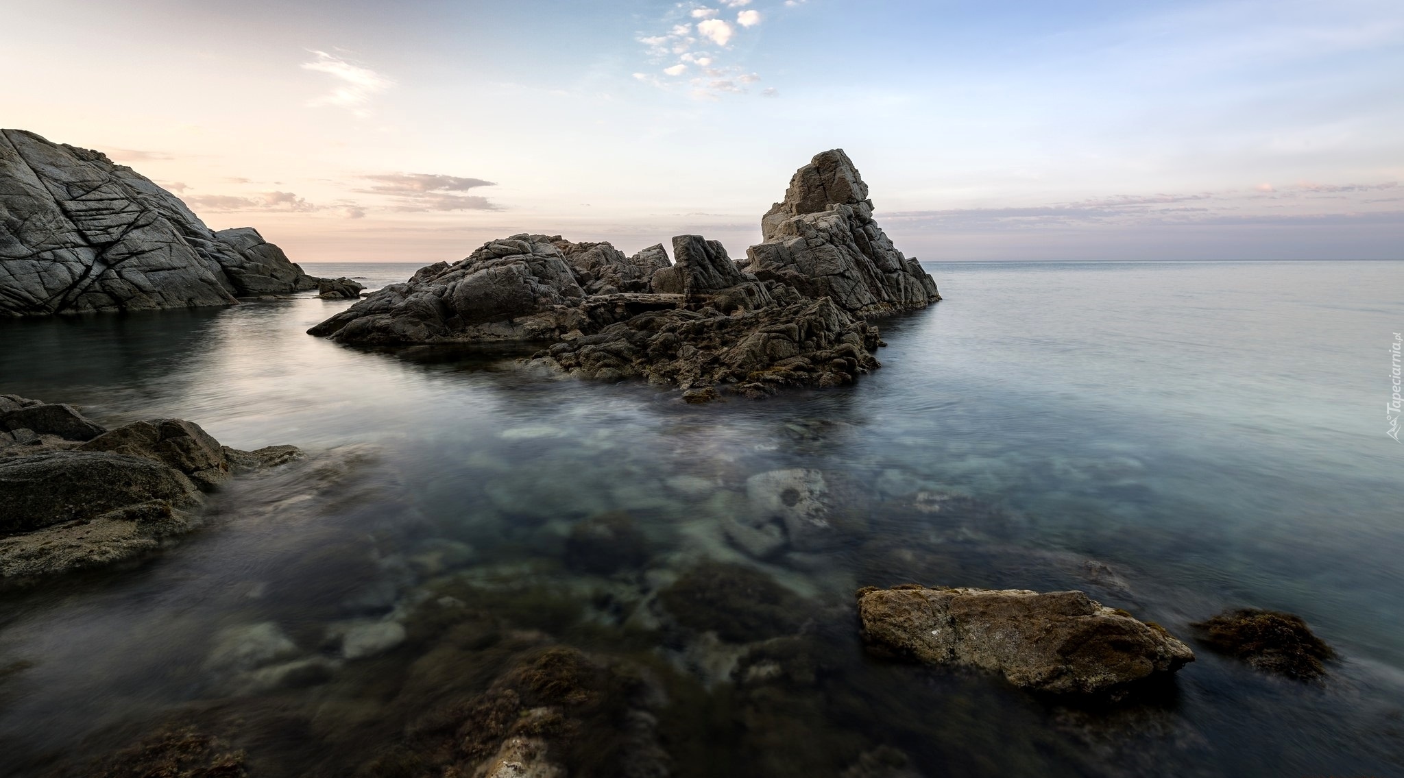 Edytor tapety: Skały zanurzone w morzu