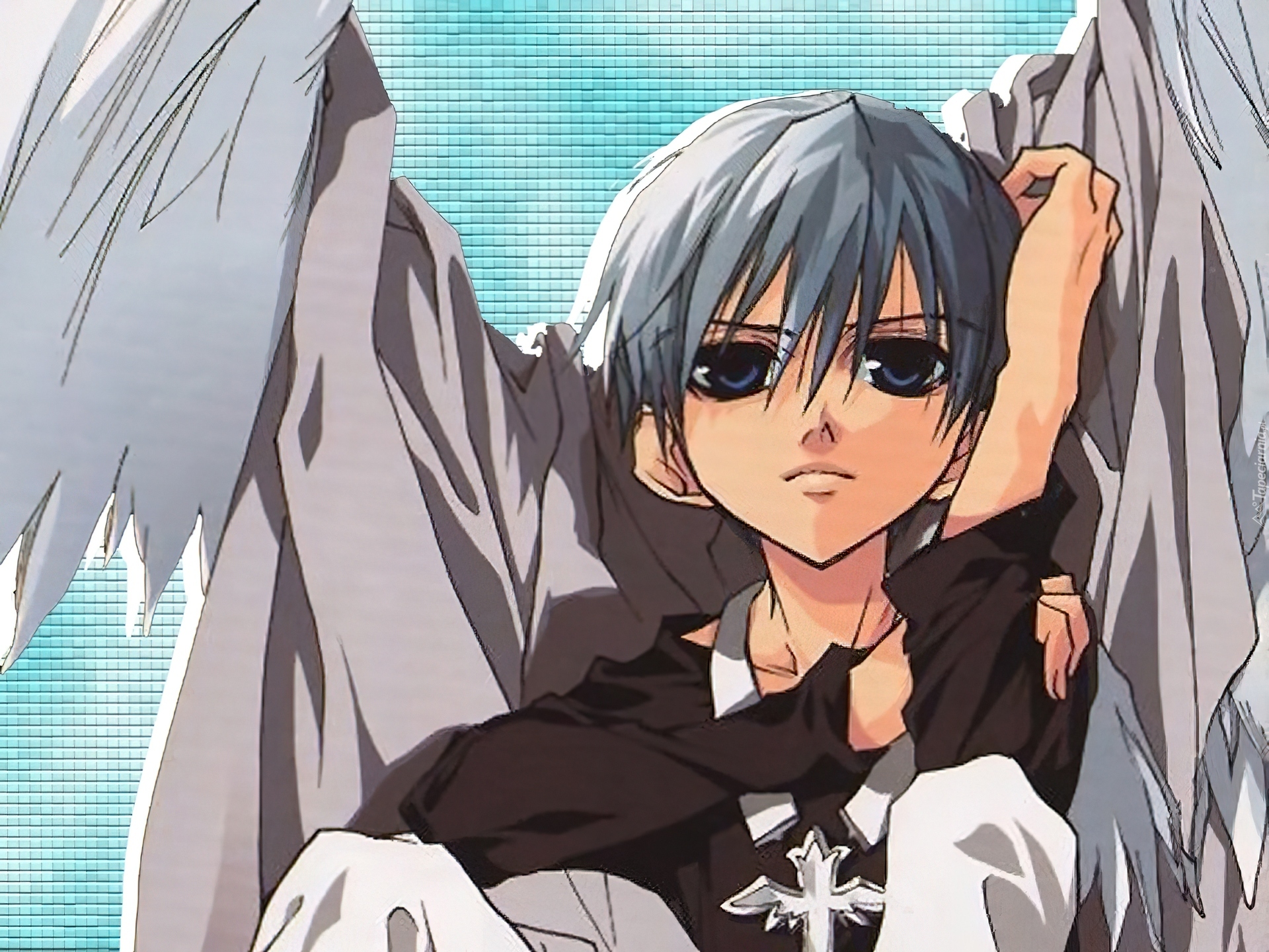Edytor tapety: D N Angel, skrzydła, krzyż, smutny, chłopak