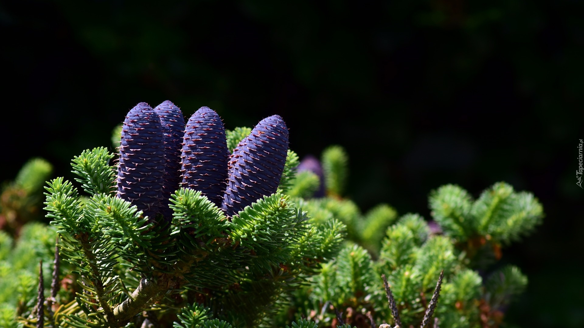 Edytor tapety: Fioletowe szyszki na jodle koreańskiej