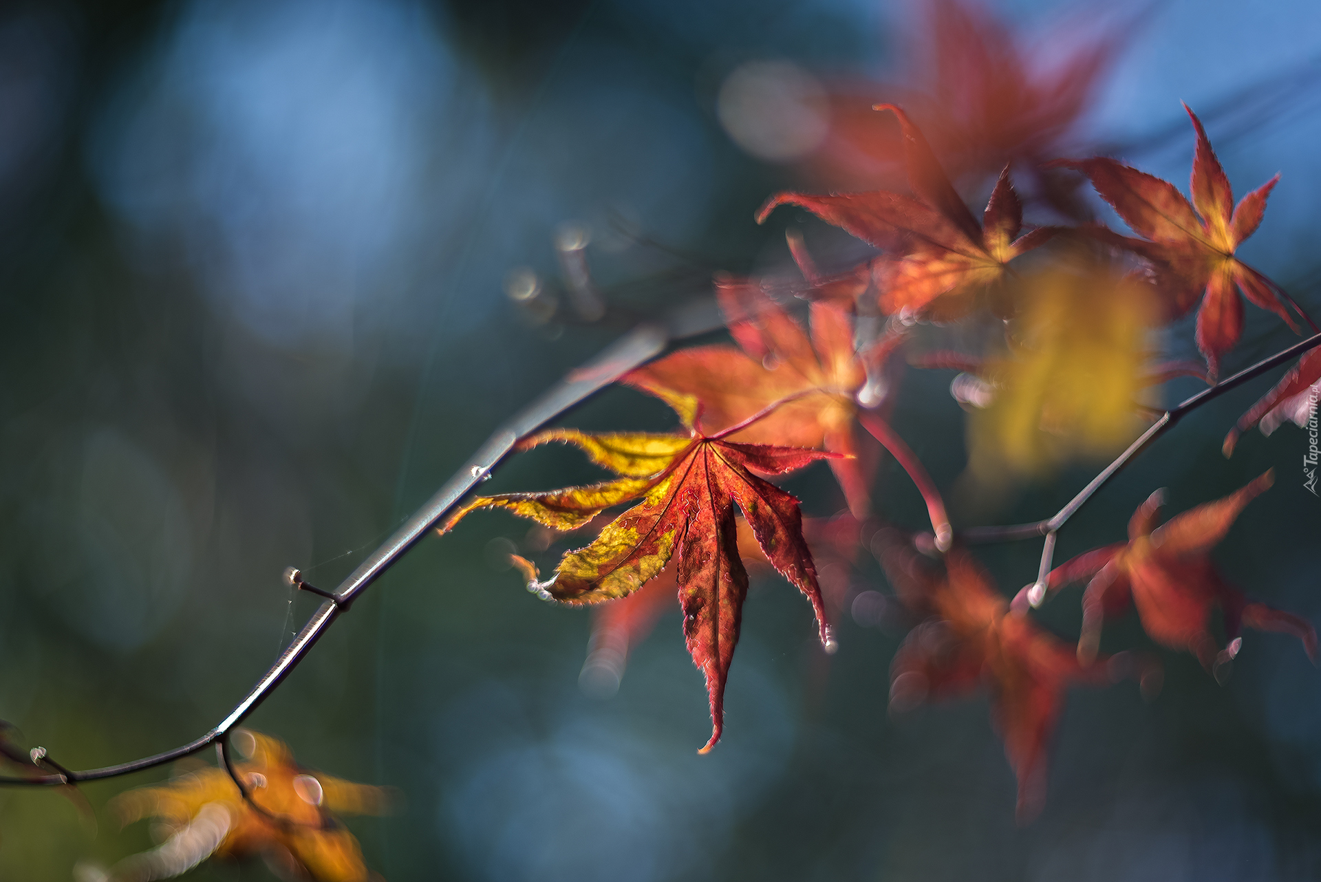 Edytor tapety: Liście klonu na gałązce w zbliżeniu