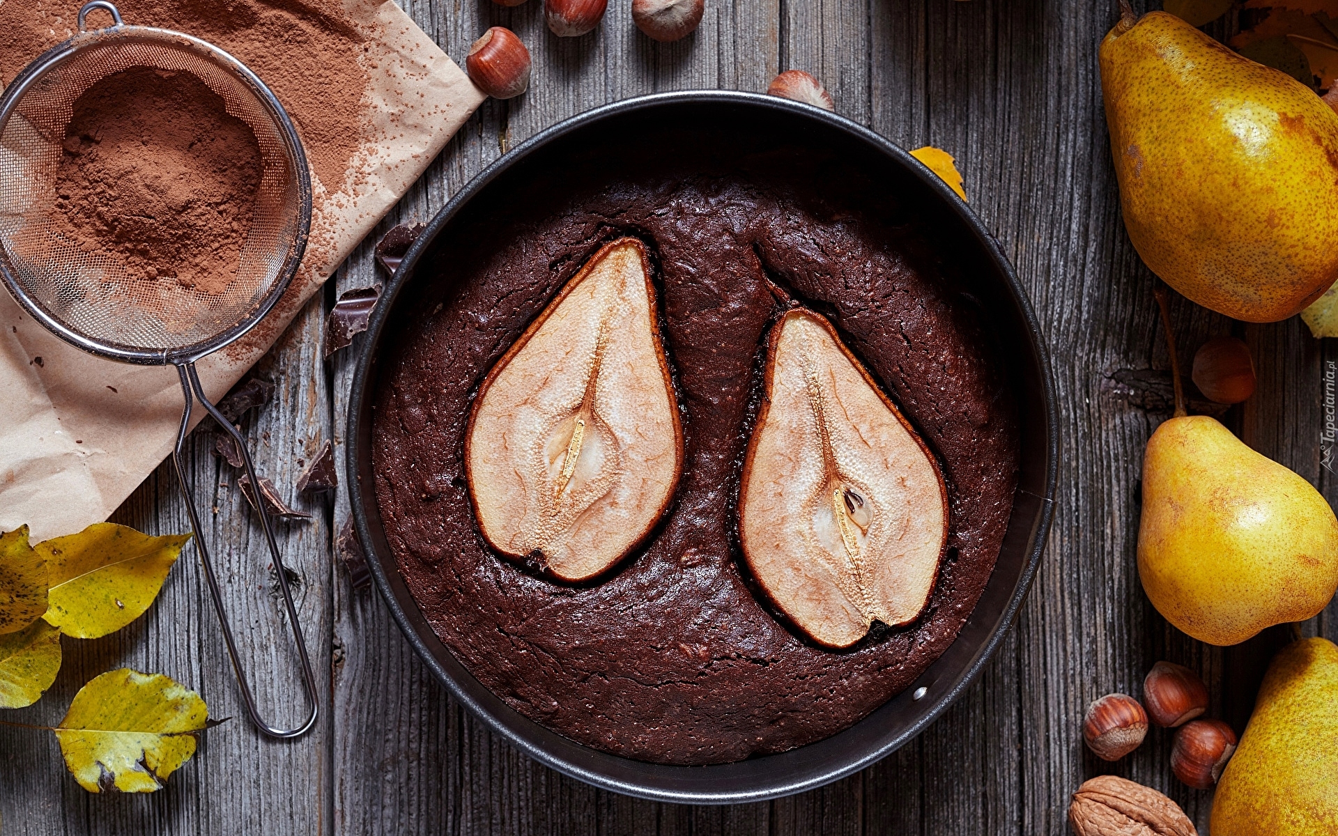 Edytor tapety: Ciasto czekoladowe z gruszkami