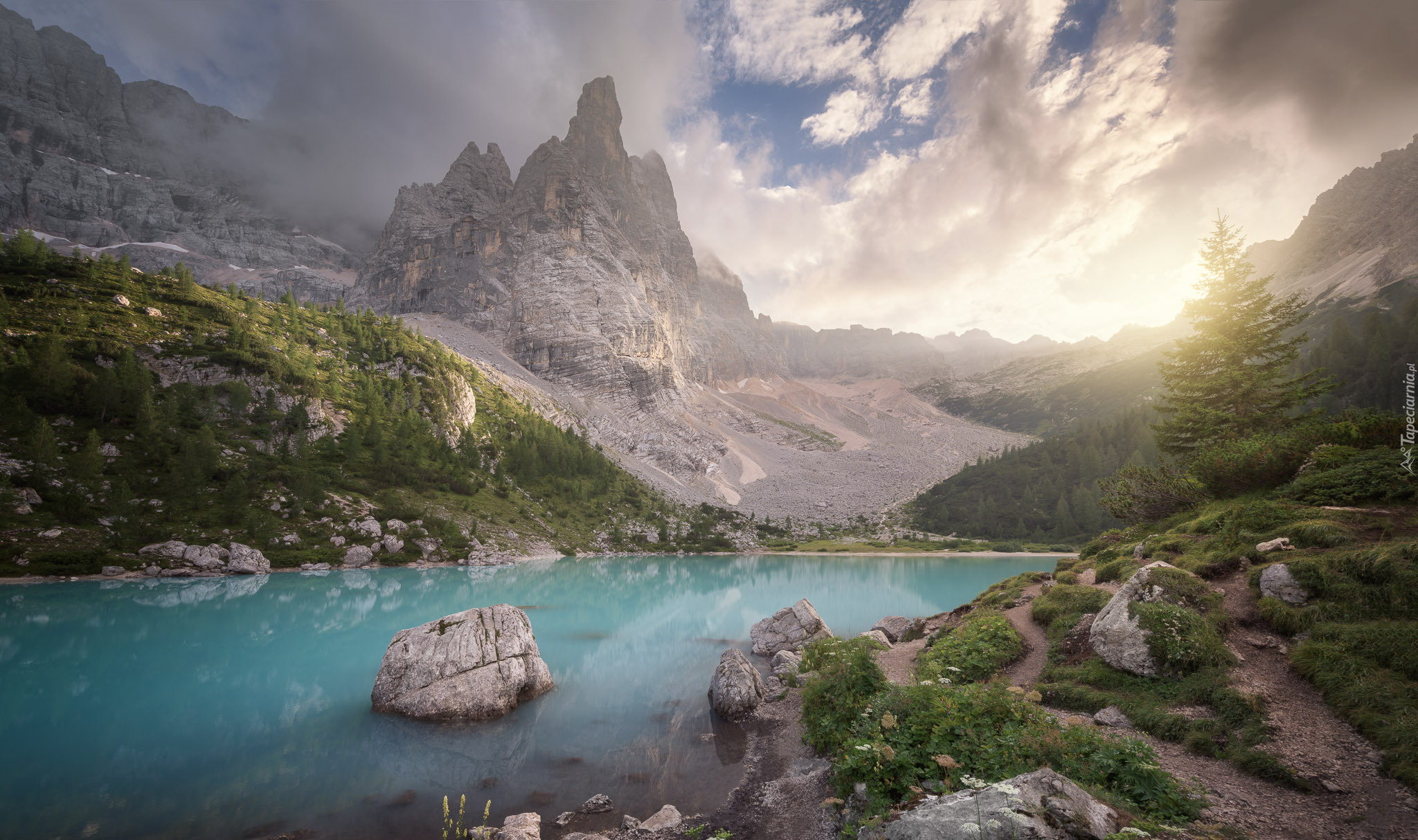 Edytor tapety: Jezioro i masyw górski Sorapiss we Włoszech