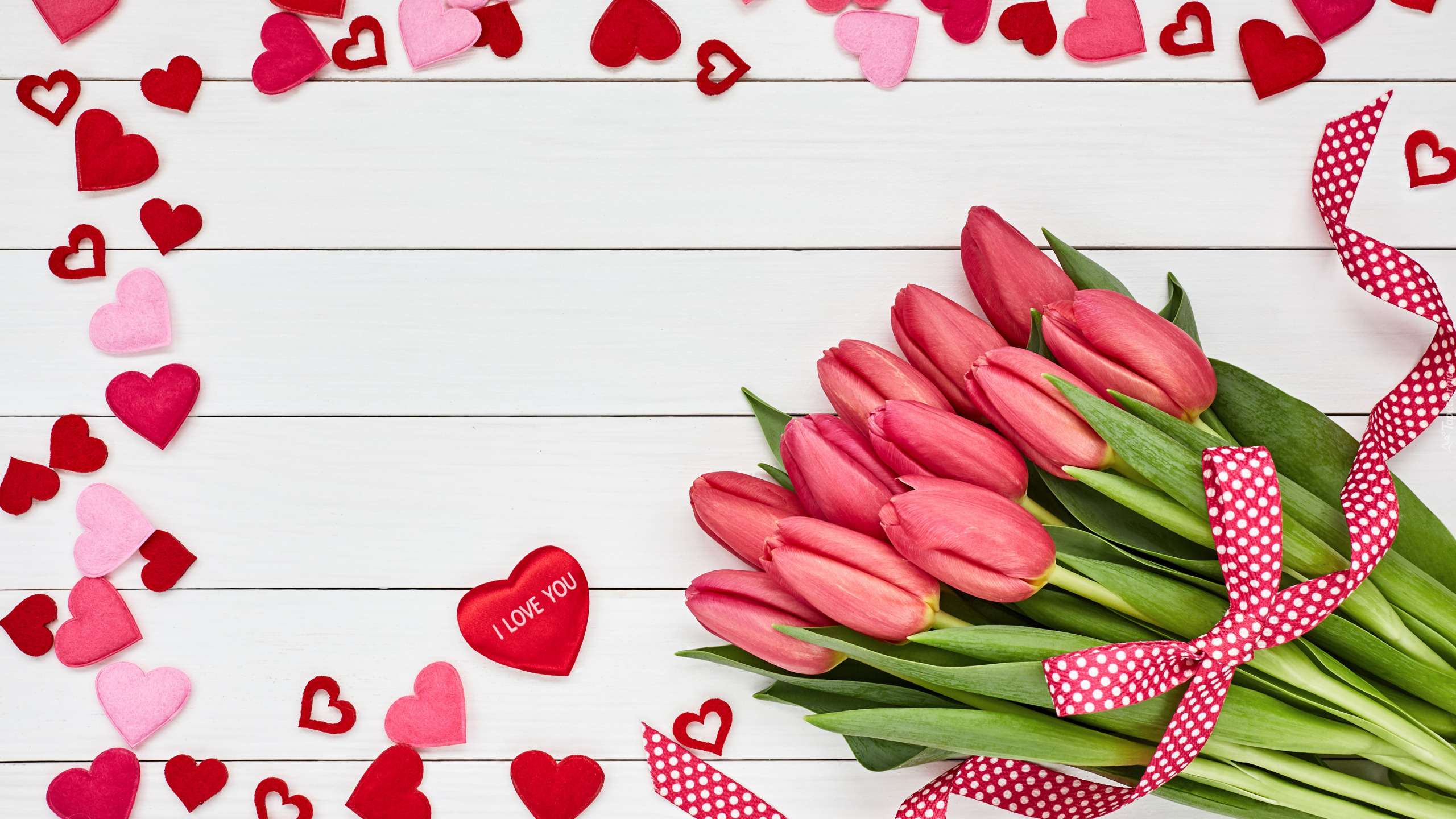 Edytor tapety: Serduszka dookoła tulipanów