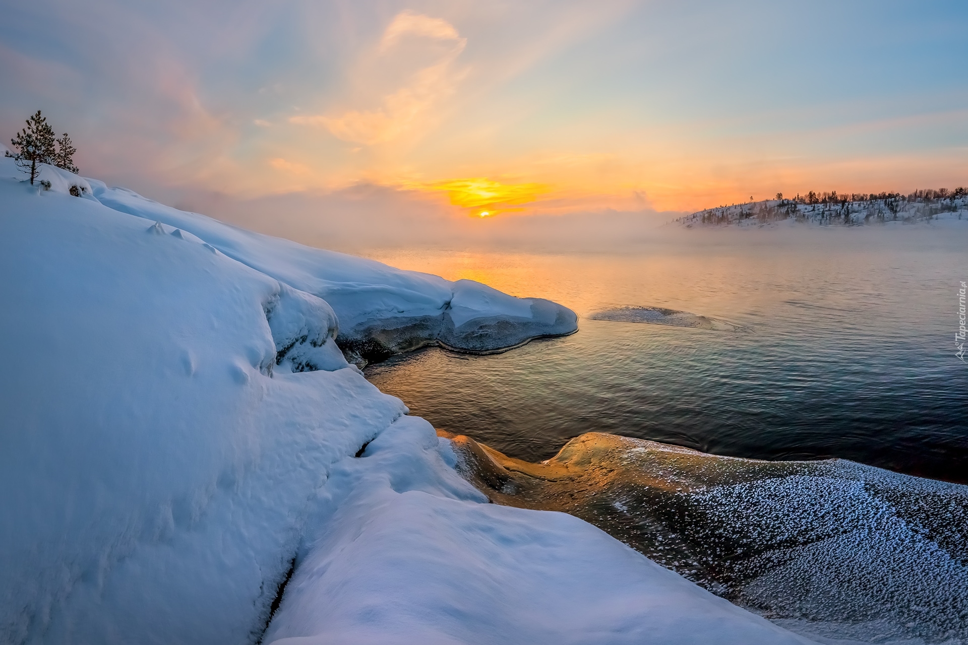 Edytor tapety: Jezioro Ładoga w Rosji we wschodzącym słońcu