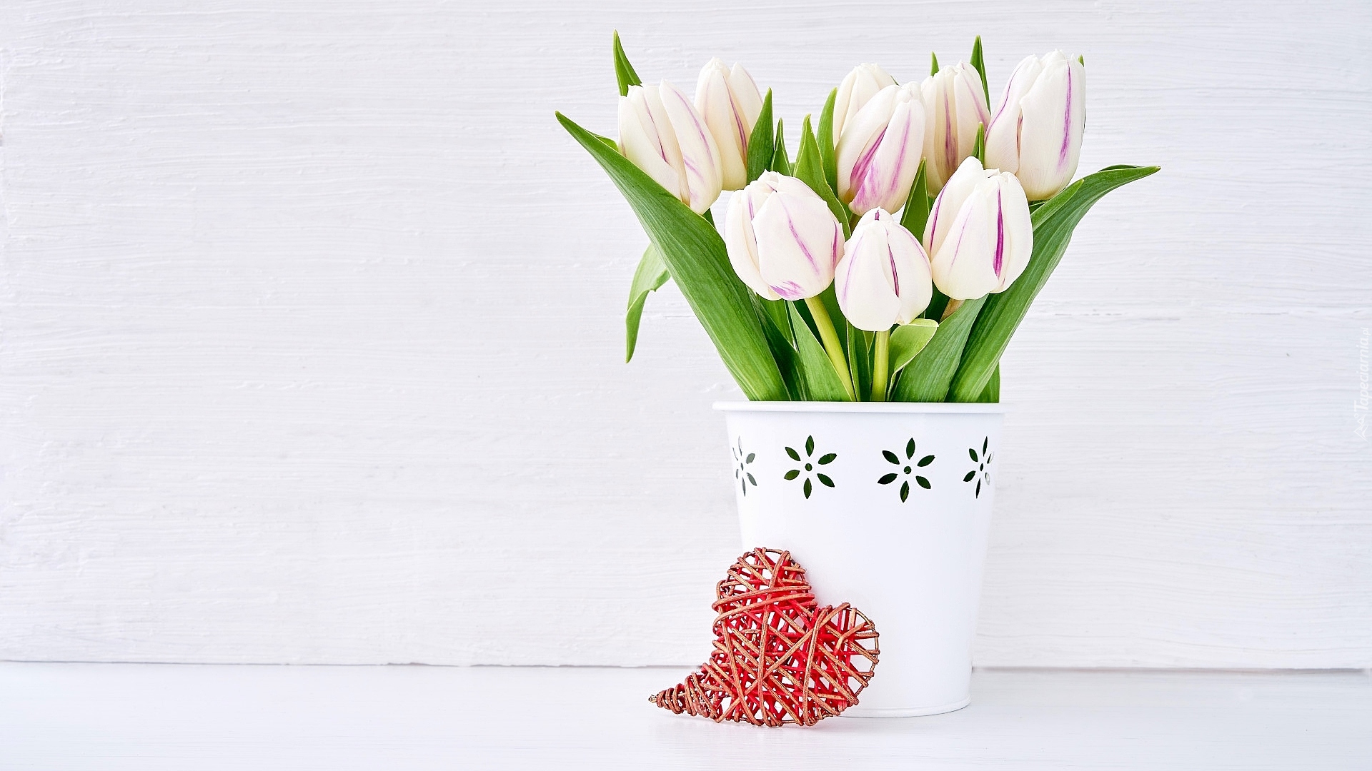 Edytor tapety: Serduszko oparte o doniczkę z tulipanami