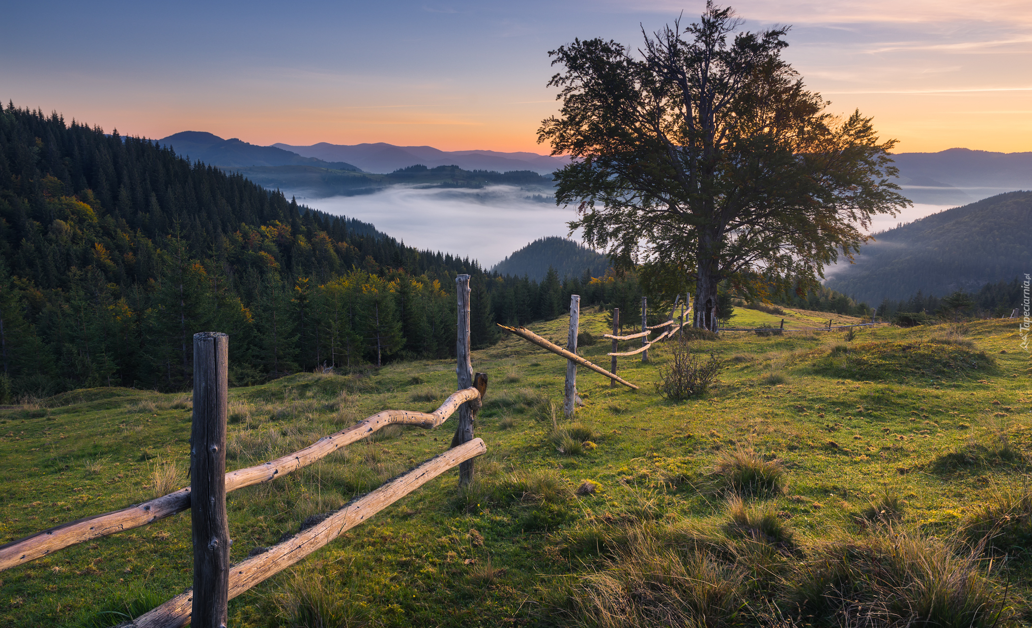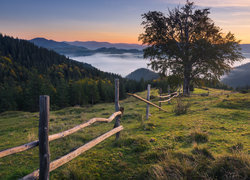 Edytor tapety: Drzewo przy ogrodzeniu na łące