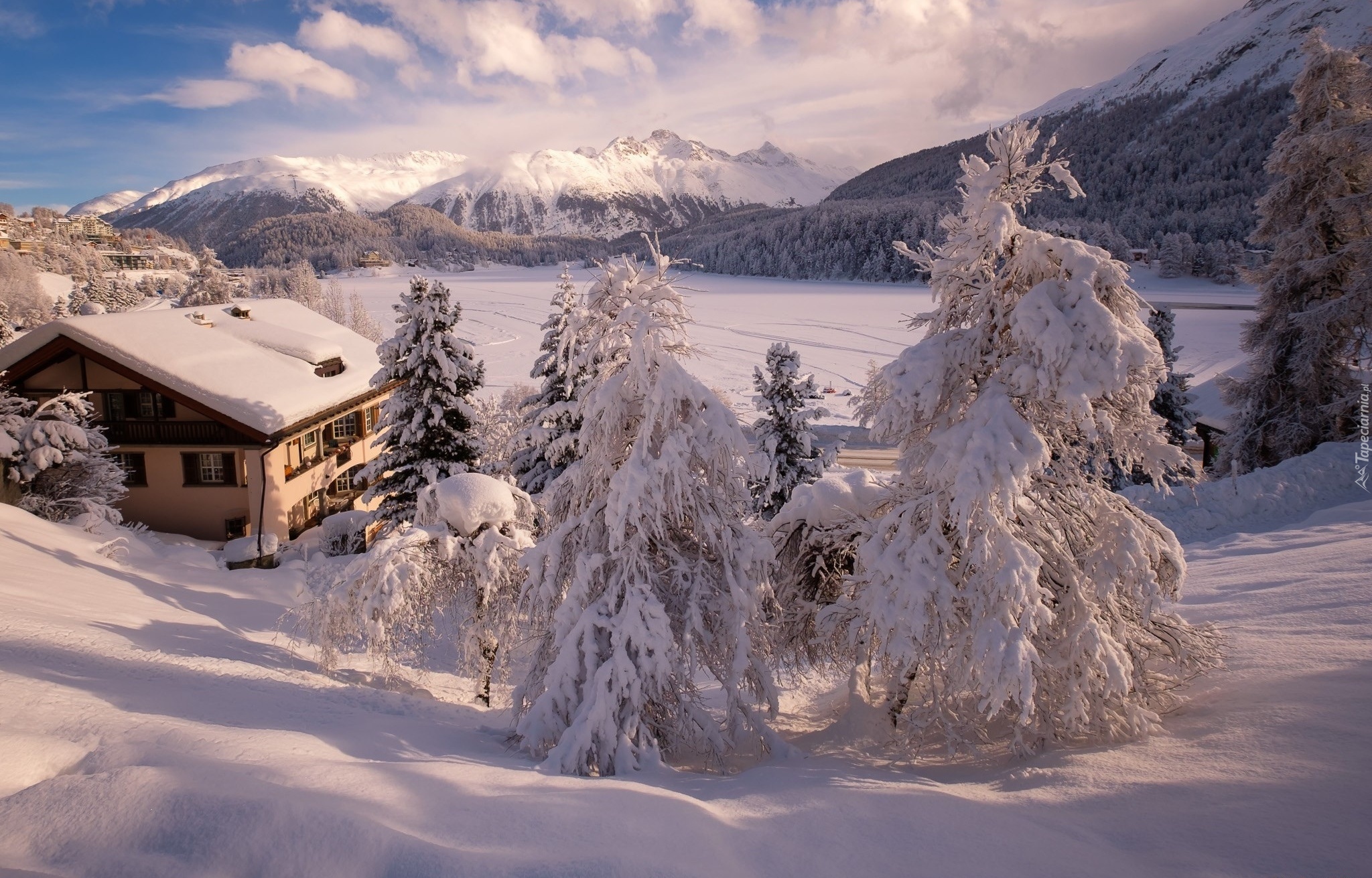Edytor tapety: Zaśnieżone jezioro Sankt Moritz w Szwajcarii