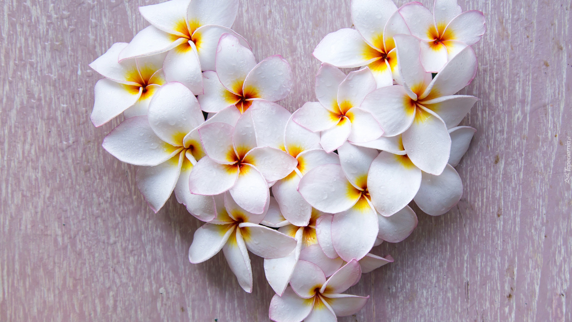 Edytor tapety: Kwiaty plumerii ułożone w serce