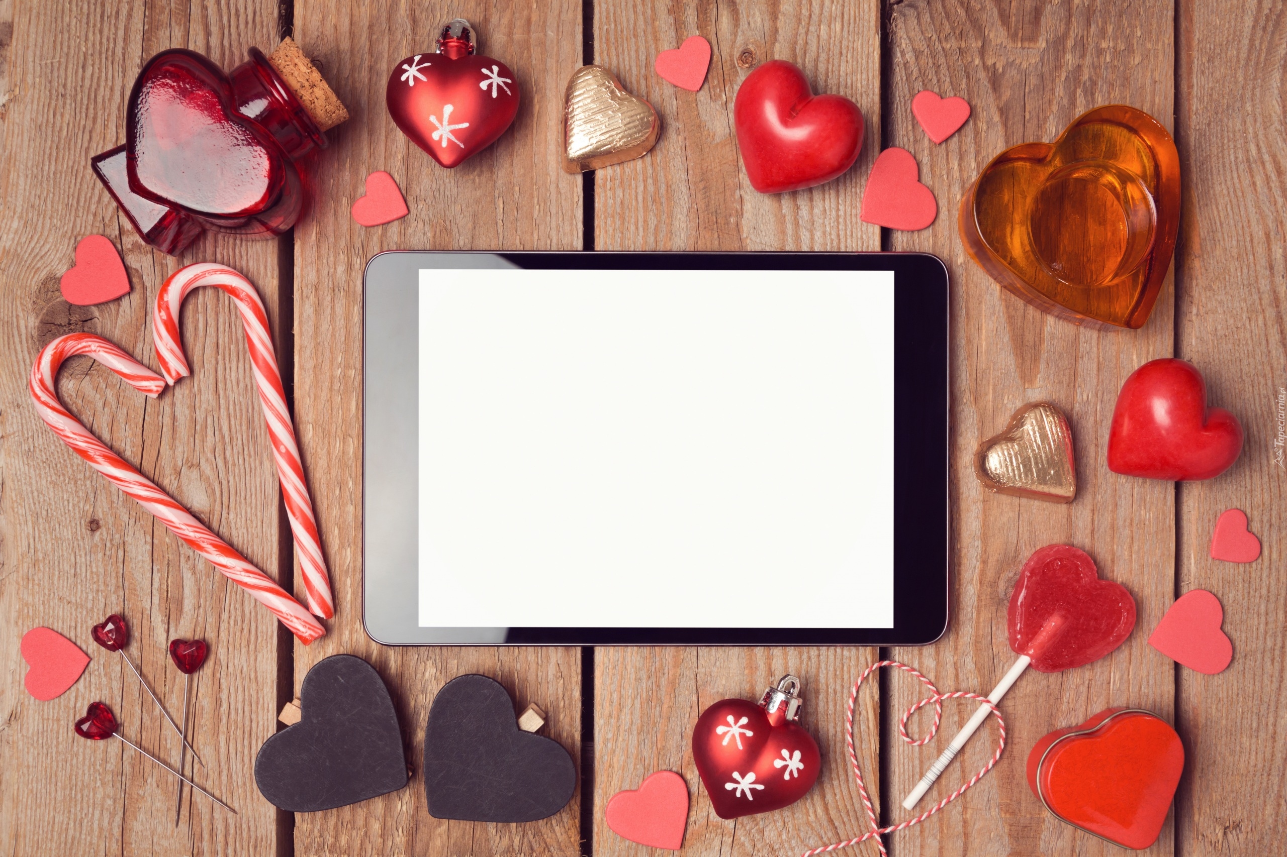 Edytor tapety: Serduszka i lizaki dookoła tabletu