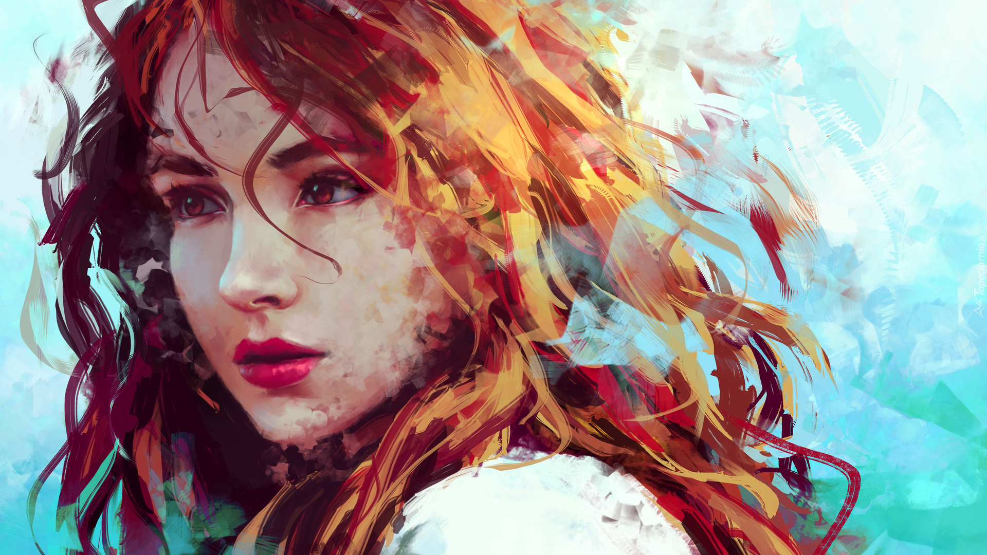 Edytor tapety: Twarz rudowłosej kobiety w grafice