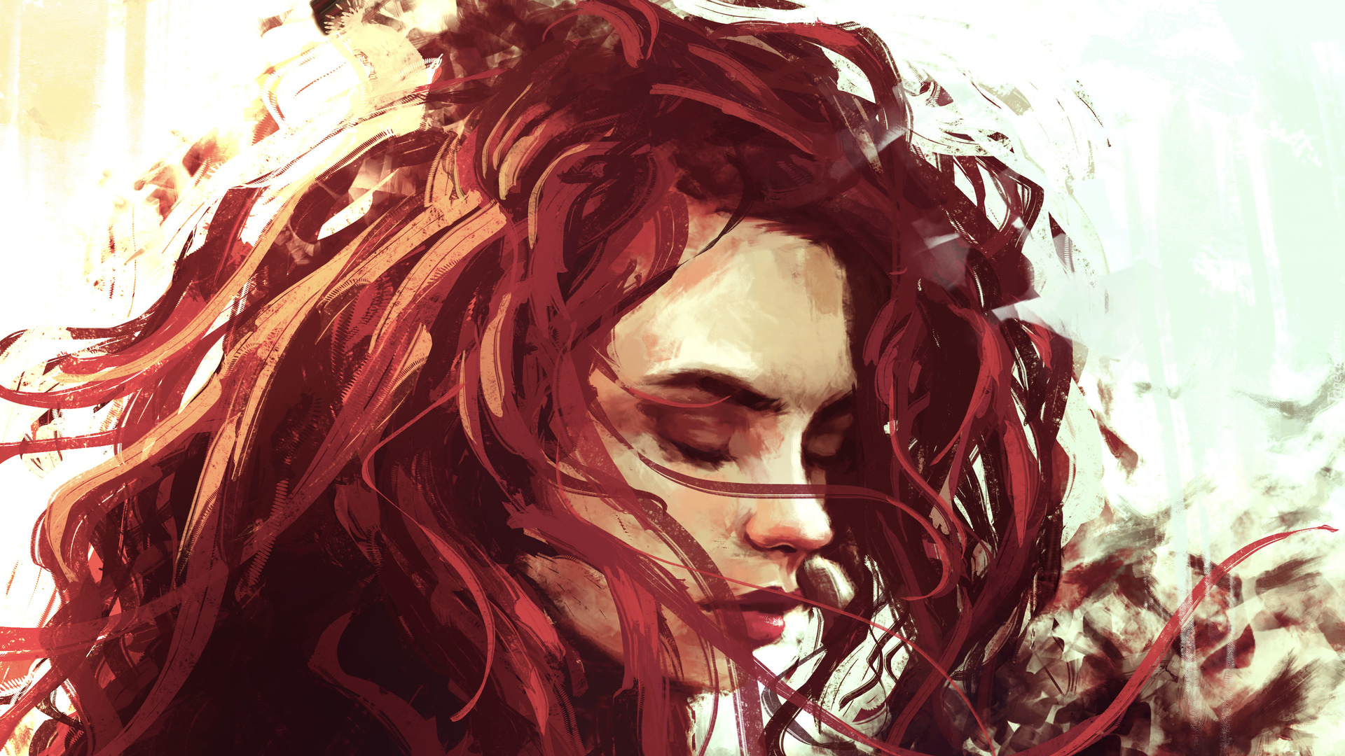 Edytor tapety: Kobieta o rudych włosach w grafice