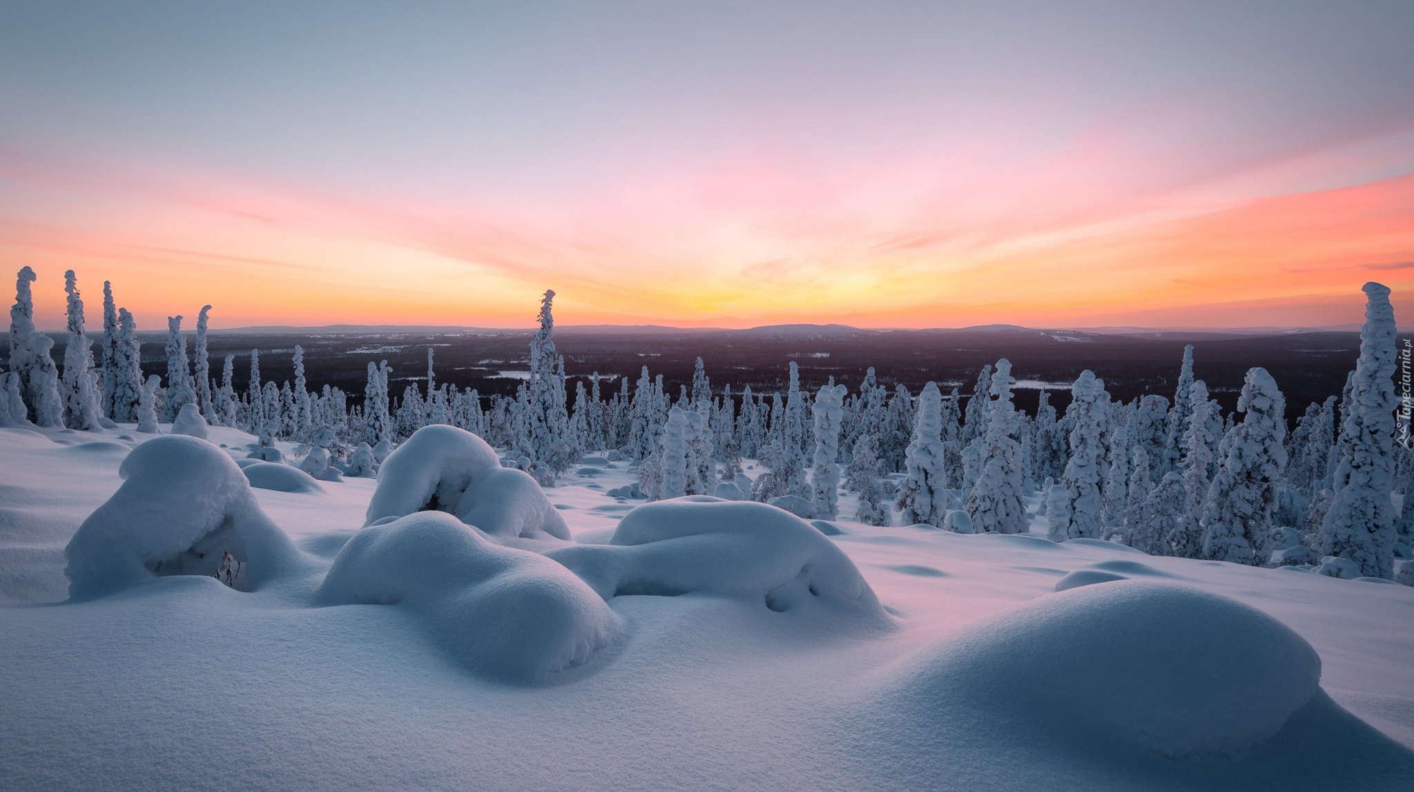 Edytor tapety: Zaśnieżone drzewa na tle nieba