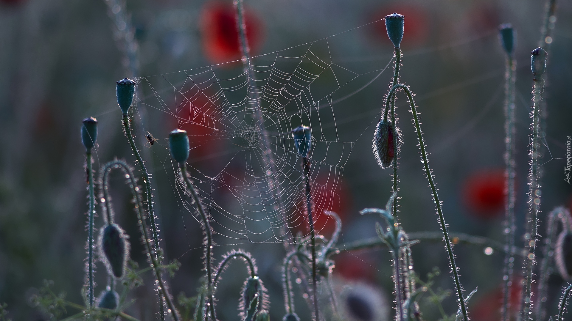 Edytor tapety: Pajęczyna rozpostarta na makach