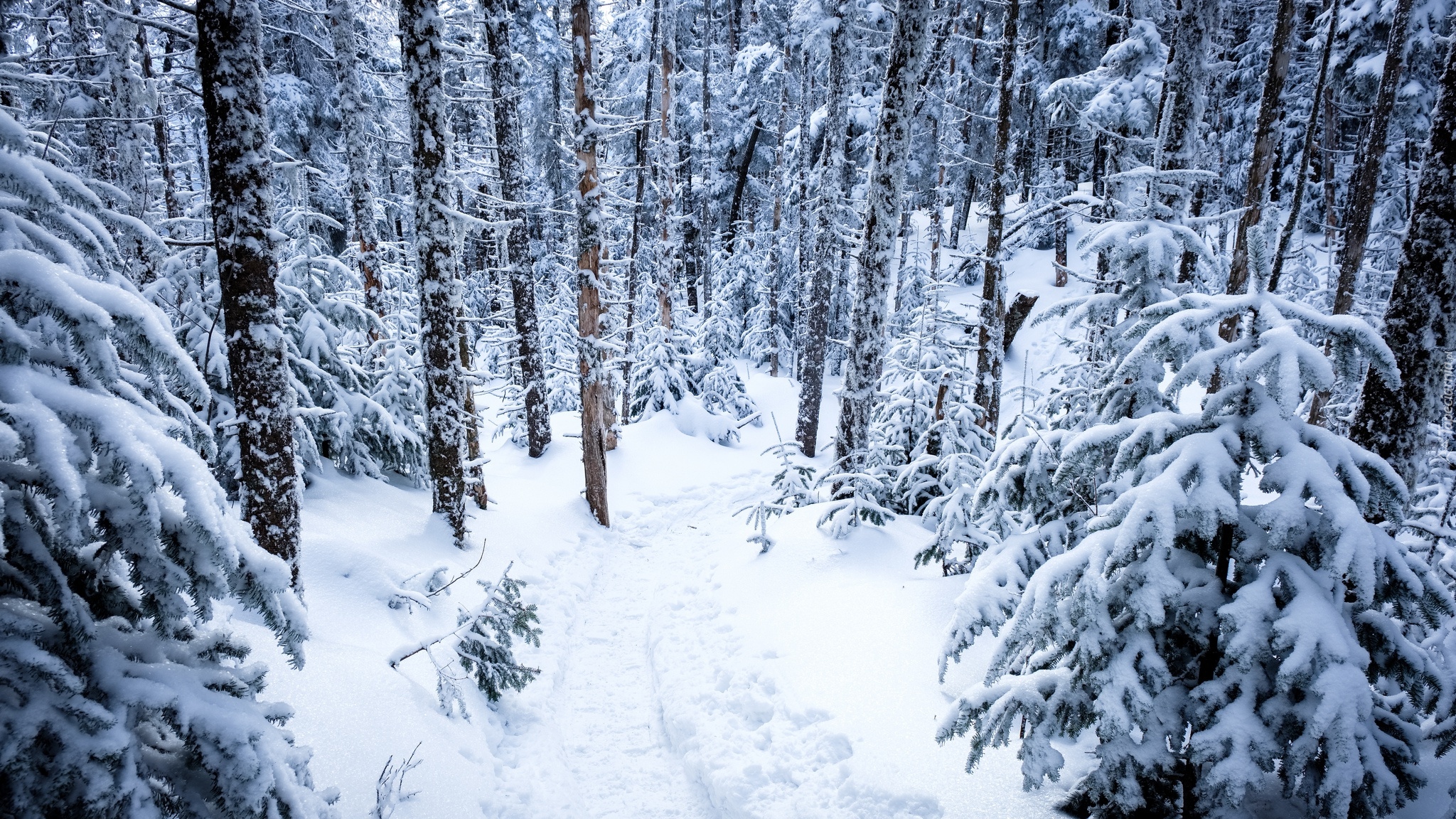 Edytor tapety: Wydeptana ścieżka w lesie zimową porą