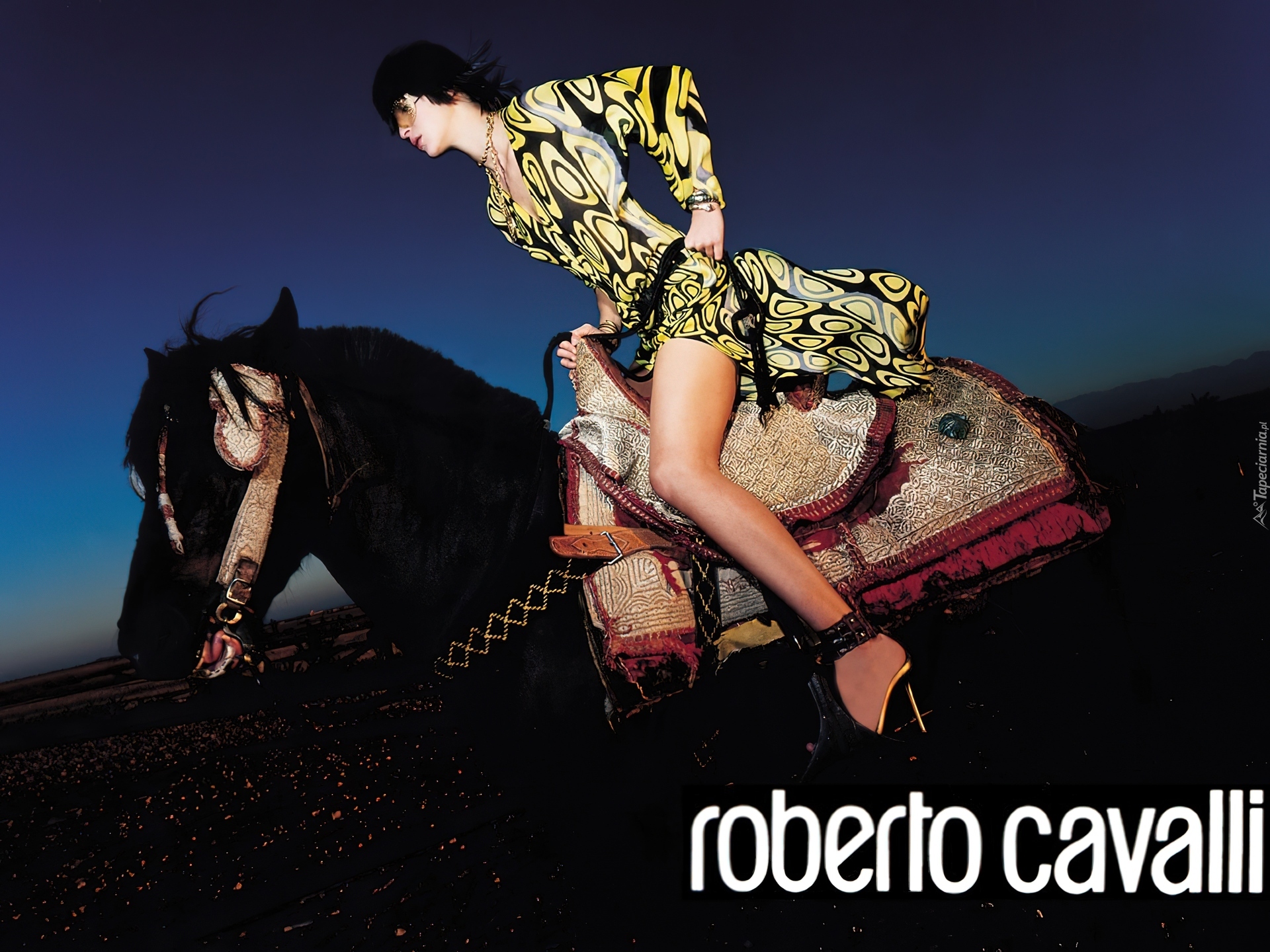 Edytor tapety: Roberto Cavalli, kobieta, koń, sukienka