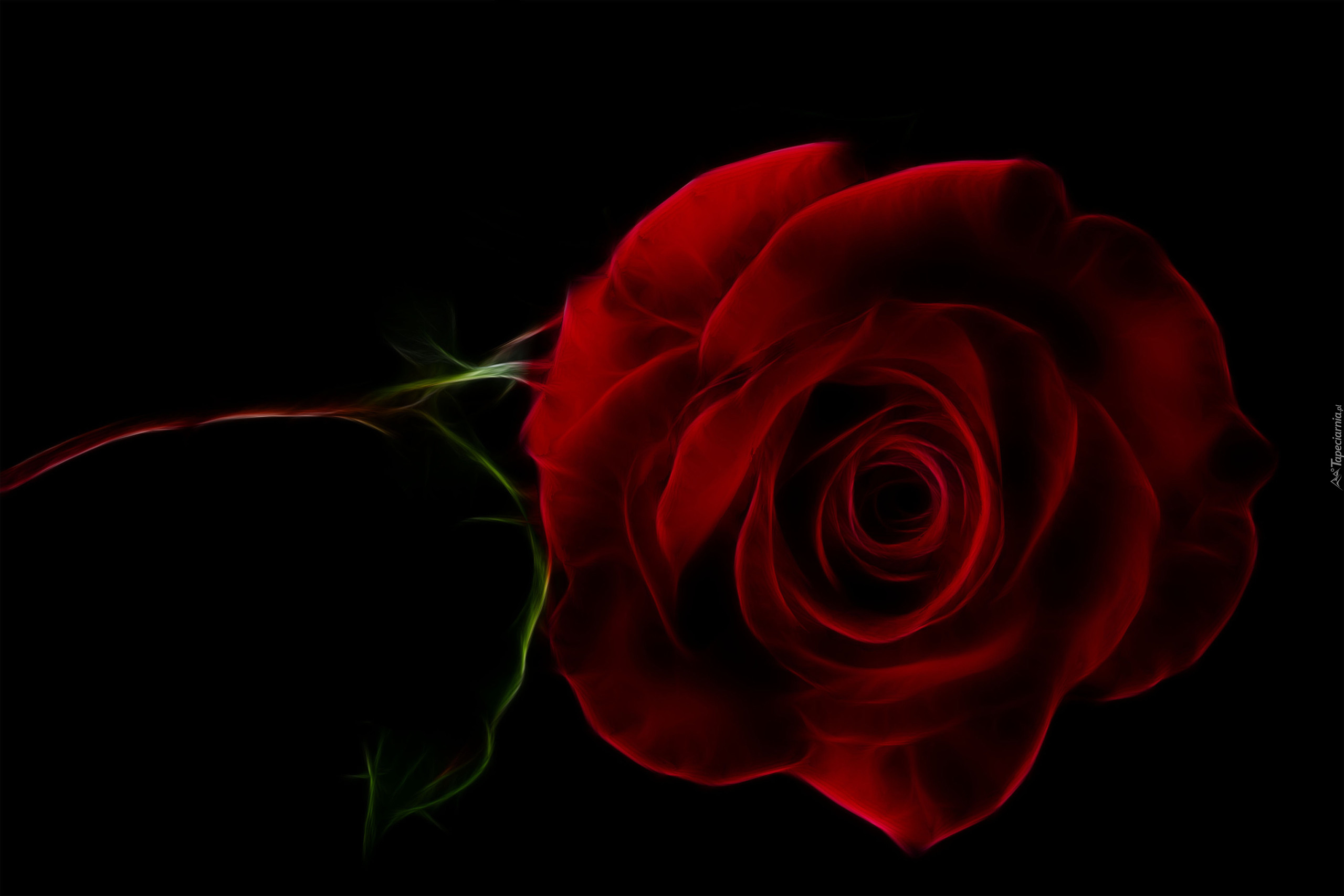 Edytor tapety: Czerwona róża w grafice na czarnym tle