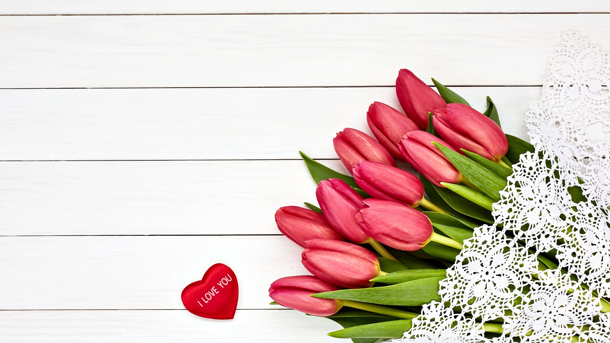 Edytor tapety: Czerwone tulipany przykryte białą serwetką