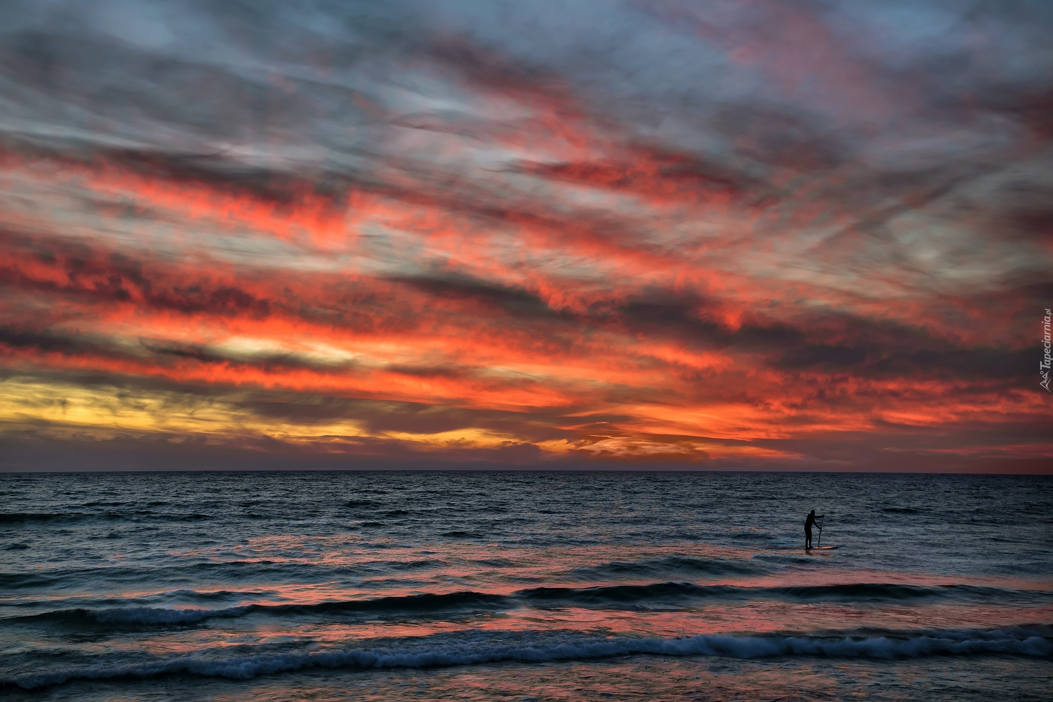 Edytor tapety: Kolorowe chmury nad morzem o zachodzie słońca