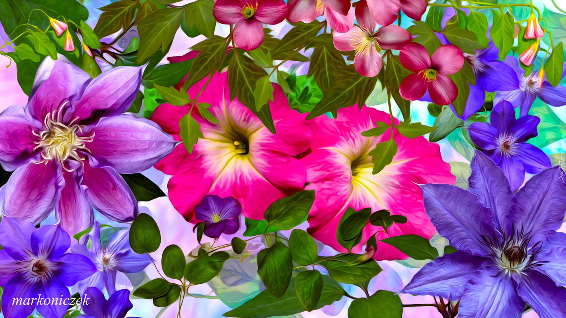 Edytor tapety: Kilka kolorowych kwiatków w grafice