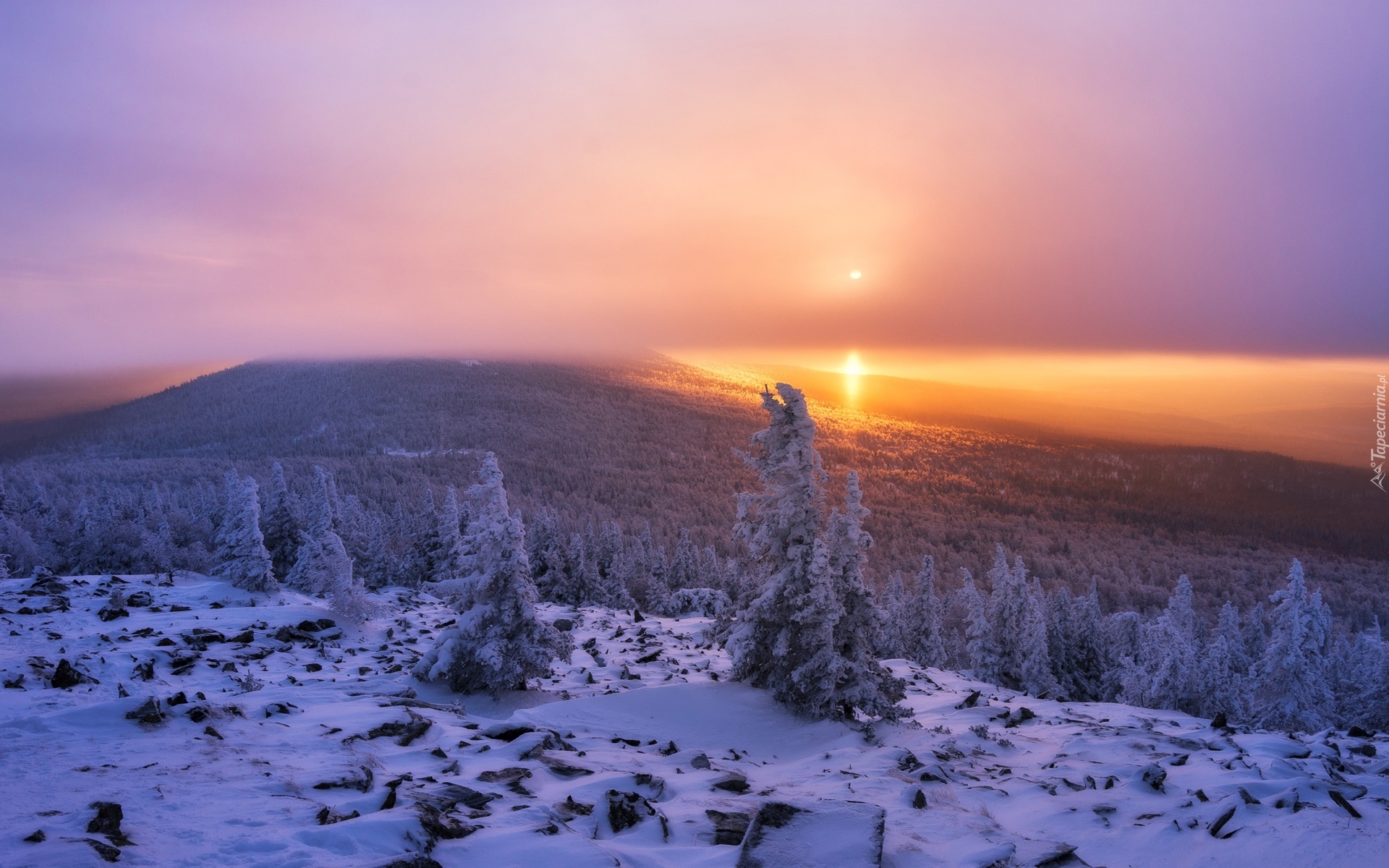 Edytor tapety: Zachodzące słońce za górą