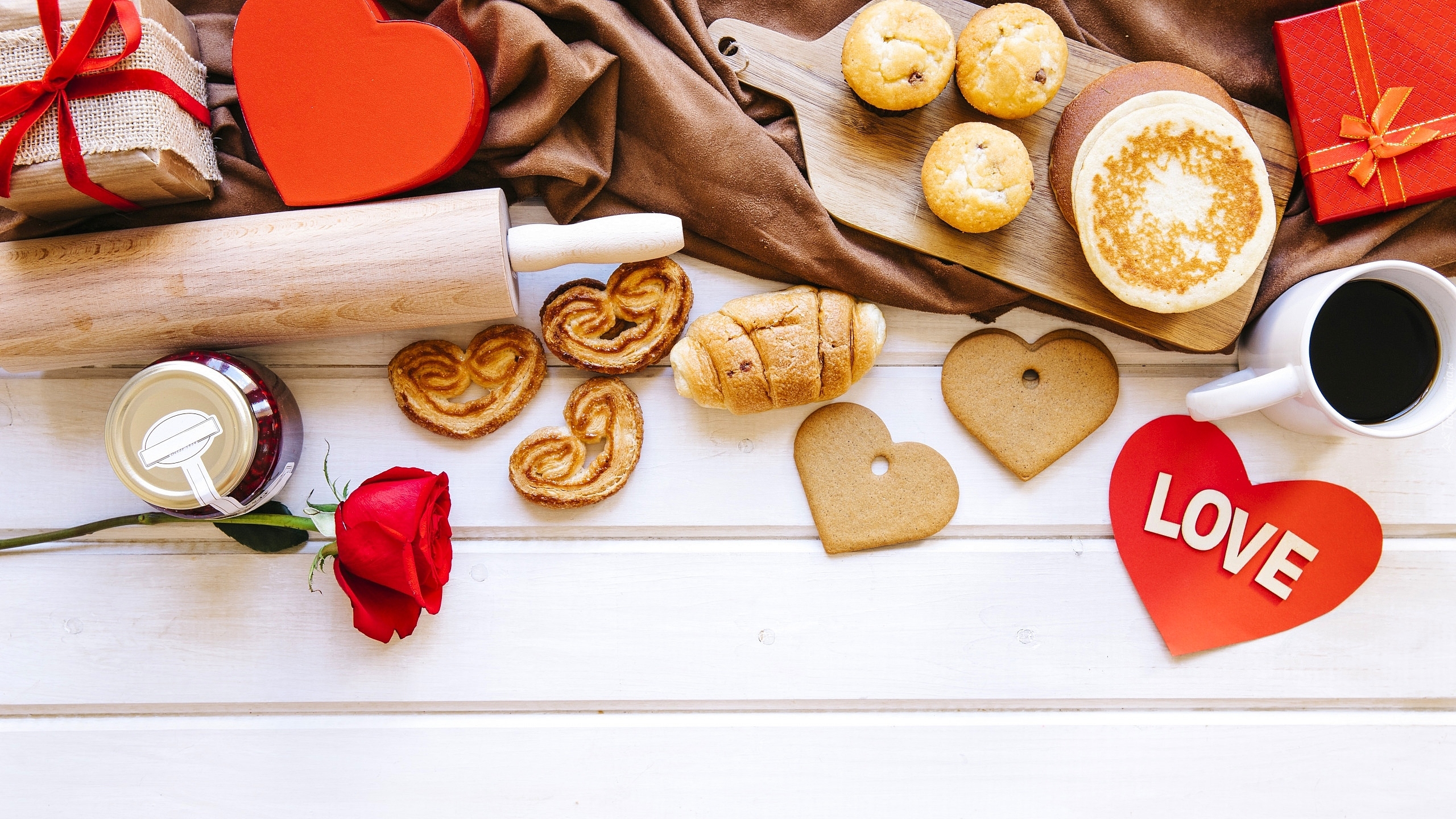 Edytor tapety: Róża i serduszko położone obok ciasteczek