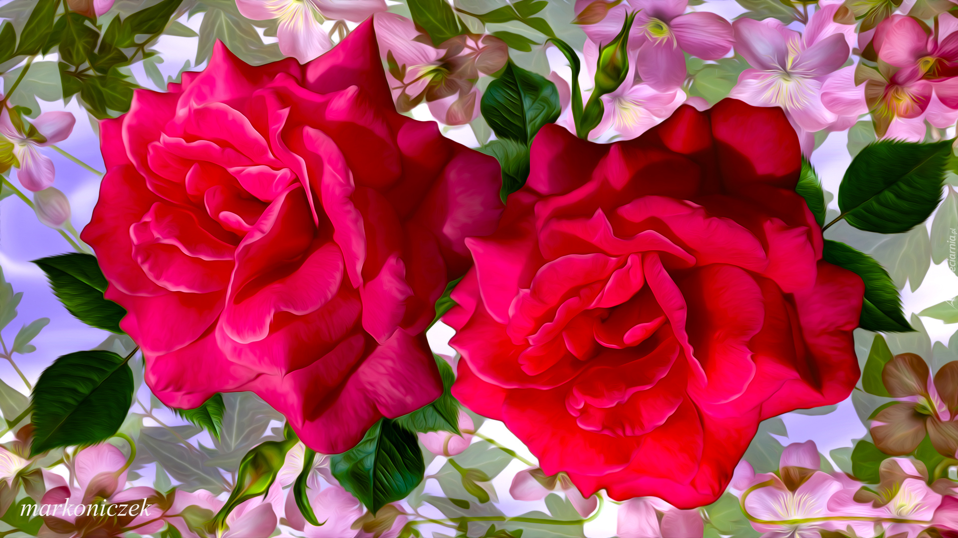 Edytor tapety: Dwie czerwone różyczki