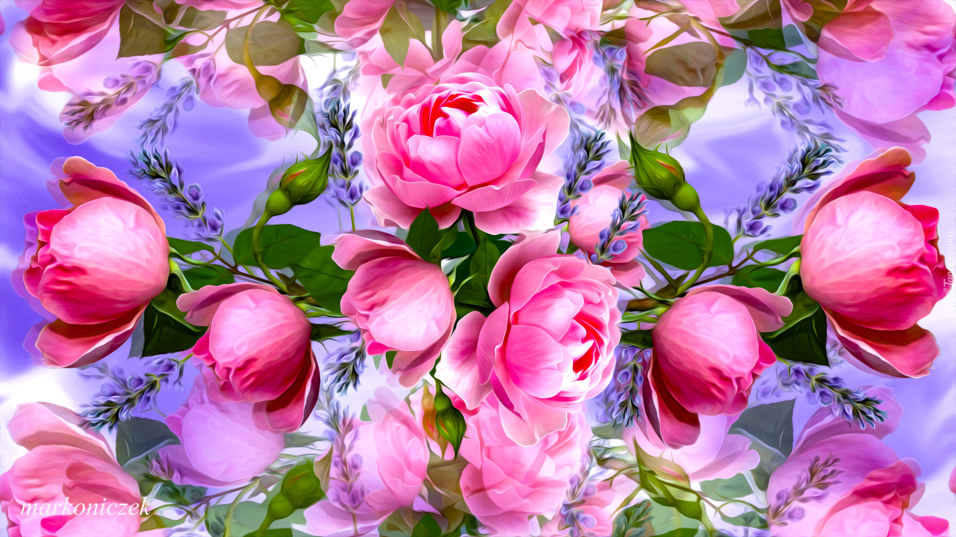 Edytor tapety: Różowe graficzne róże z pąkami