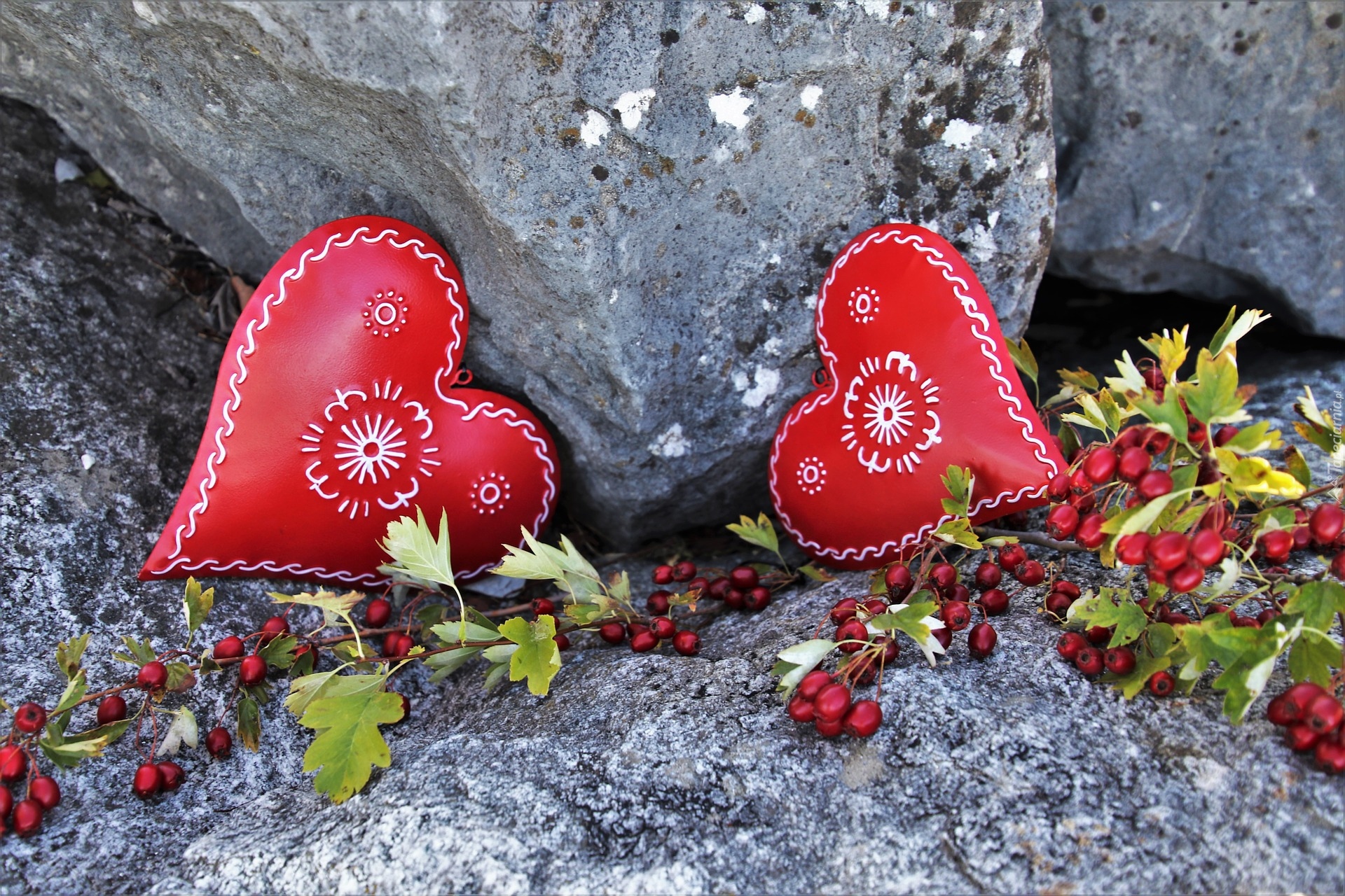 Edytor tapety: Gałązka głogu obok czerwonych serduszek na skale