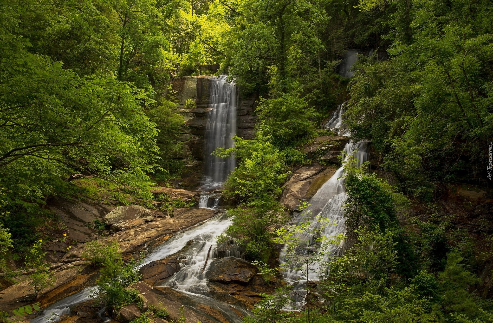 Edytor tapety: Wodospady w lesie