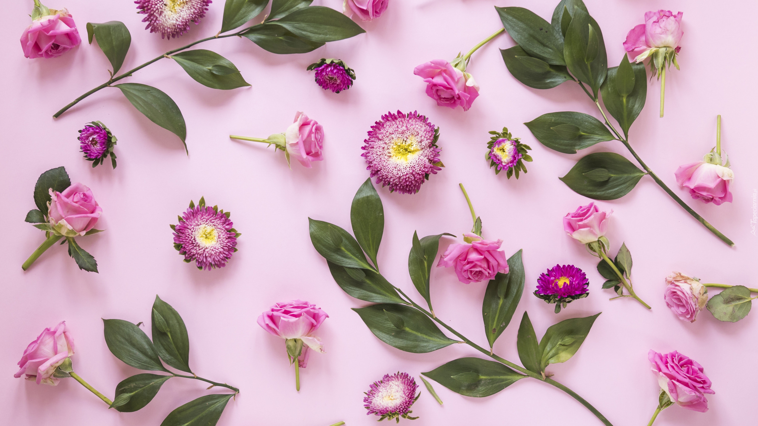 Edytor tapety: Kwiatki i listki ułożone obok siebie