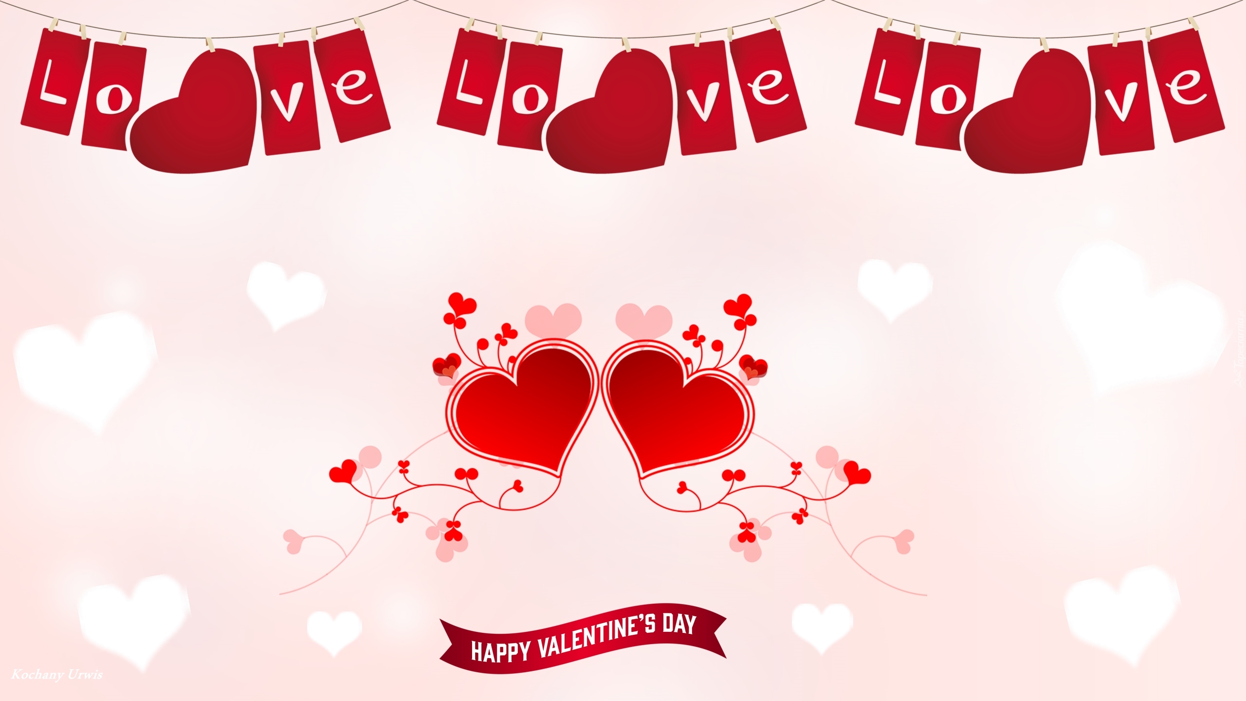 Edytor tapety: Napis Love z czerwonymi serduszkami