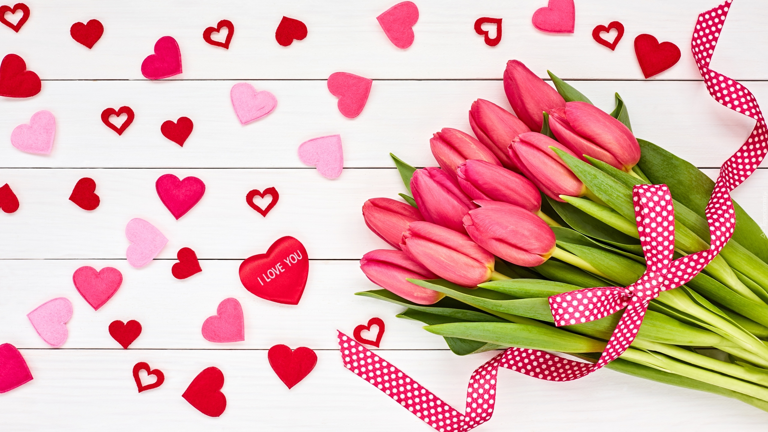 Edytor tapety: Wiązanka tulipanów z serduszkami