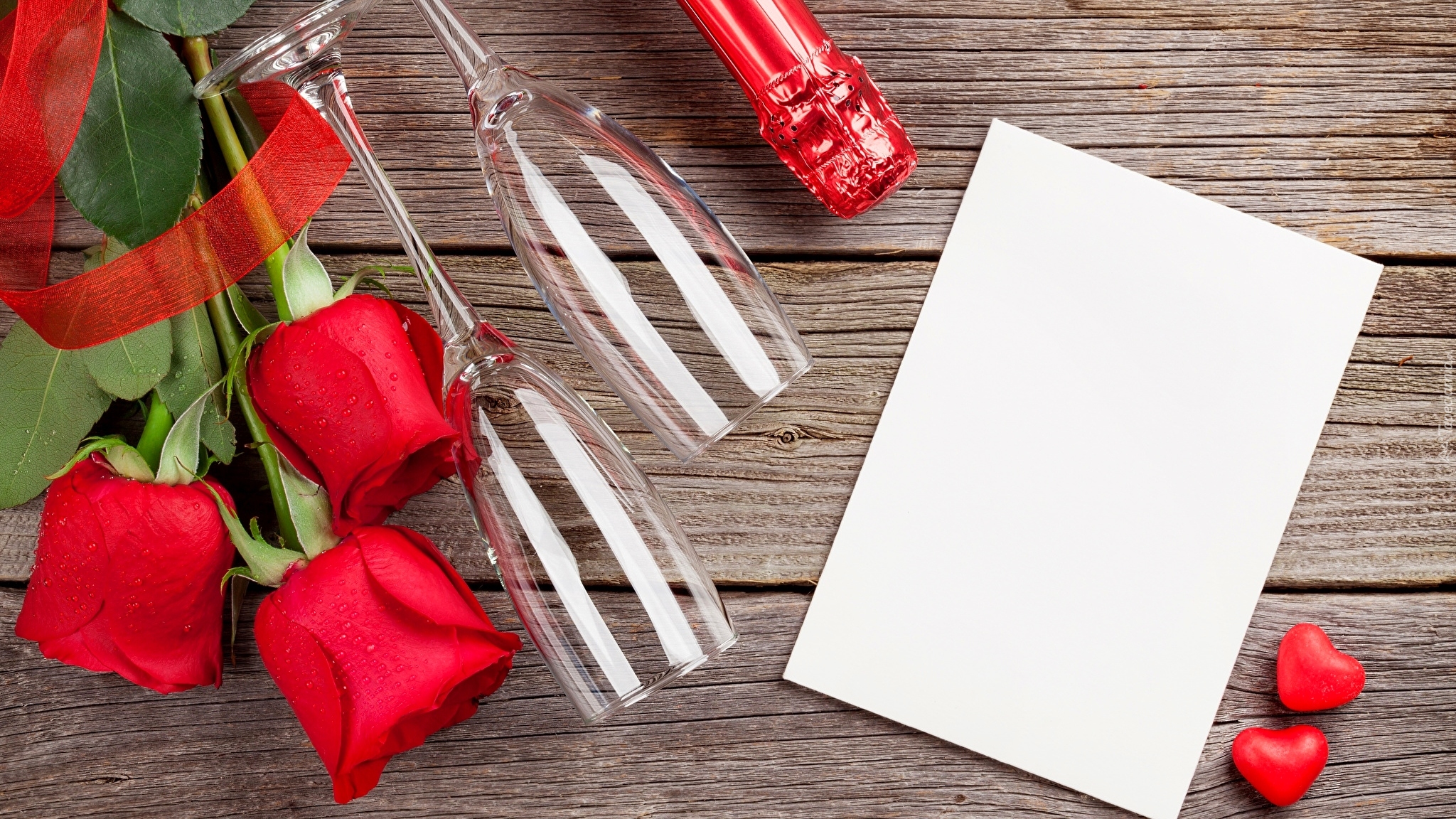 Edytor tapety: Walentynkowa kompozycja z czerwonymi różami