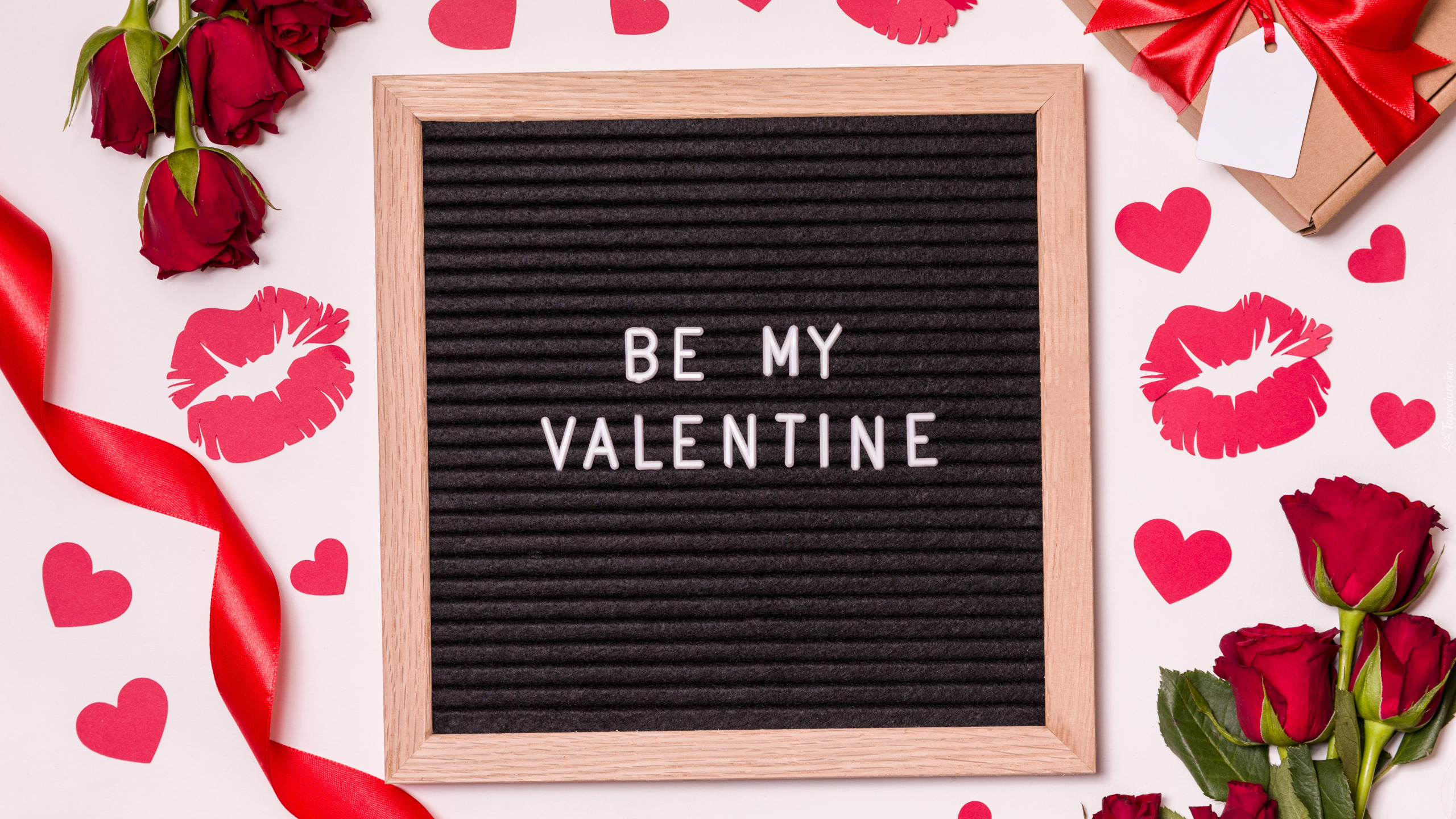 Edytor tapety: Serduszka i róże wokół tablicy z napisem