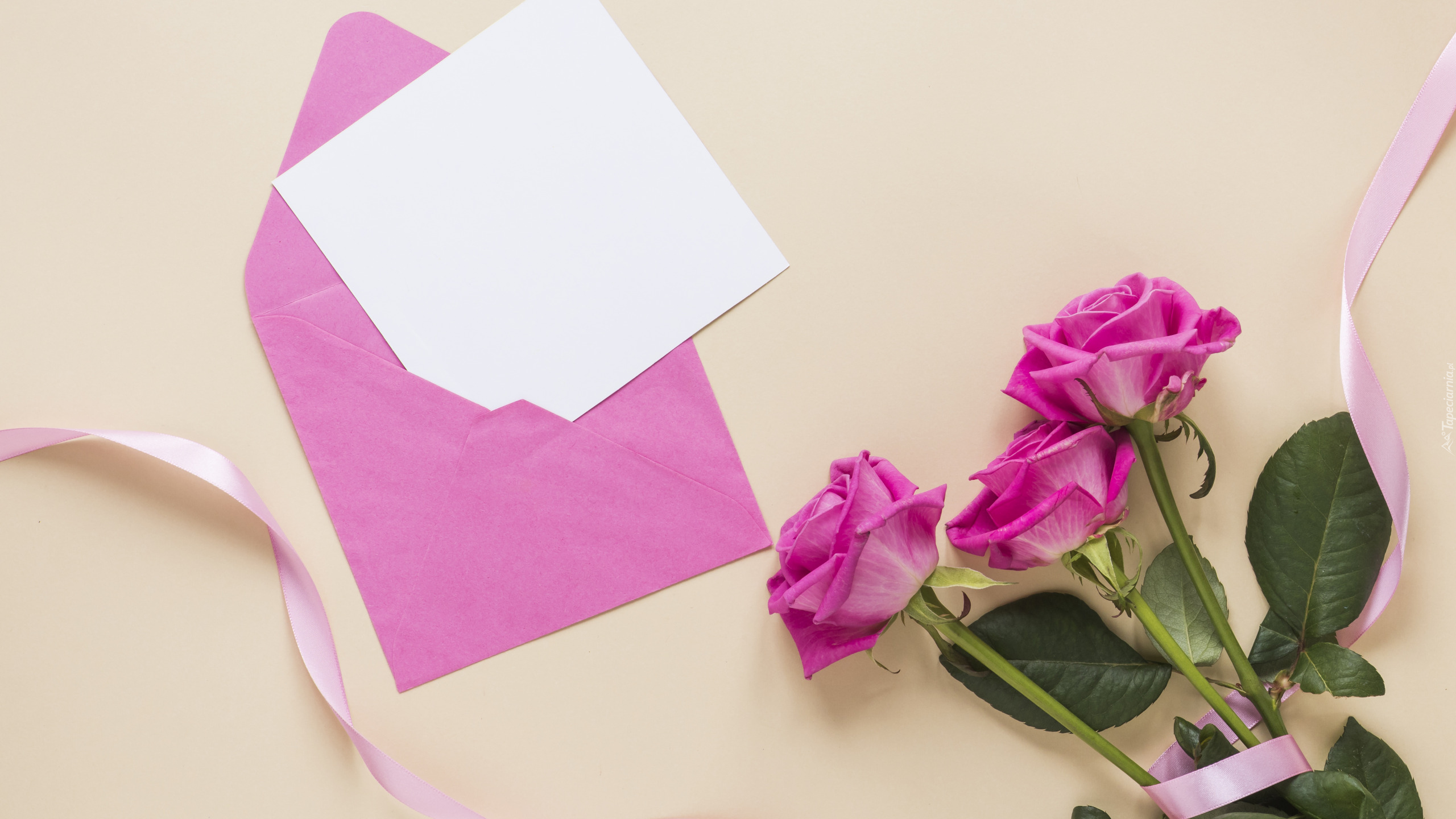 Edytor tapety: Bukiet róż obok koperty