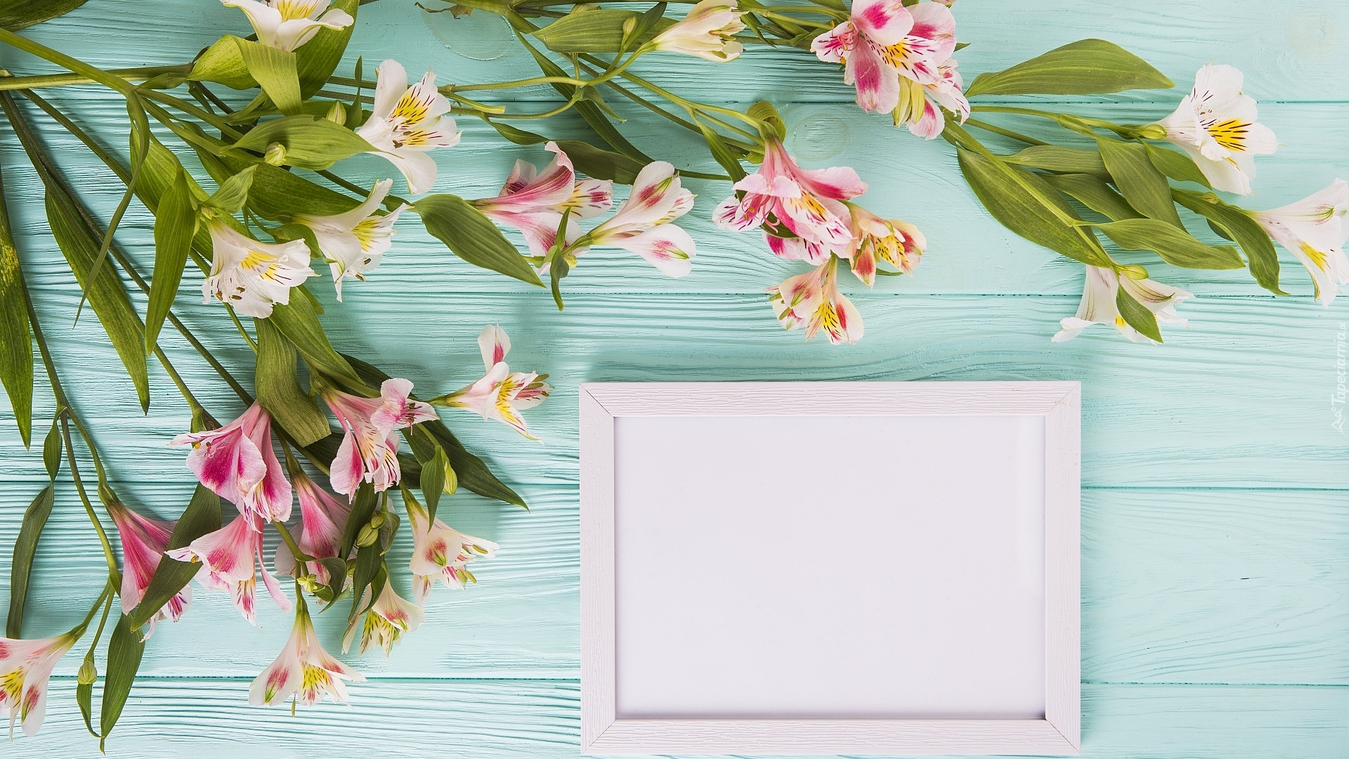 Edytor tapety: Kwiaty alstremerii obok ramki